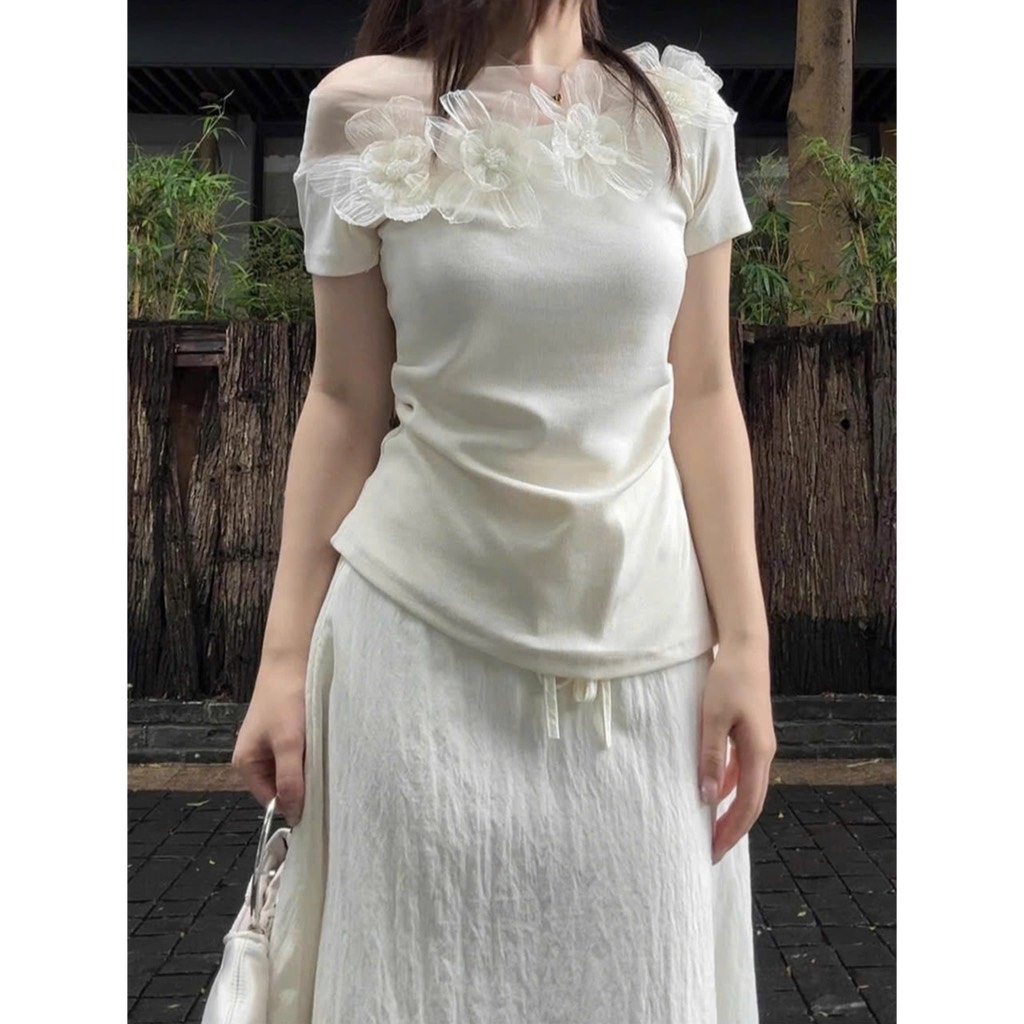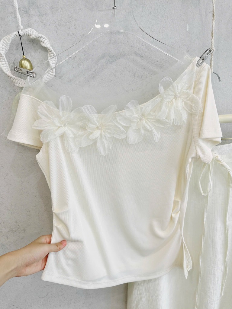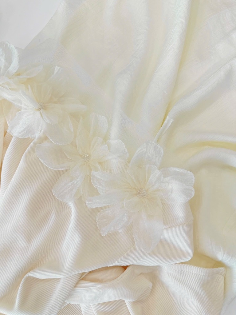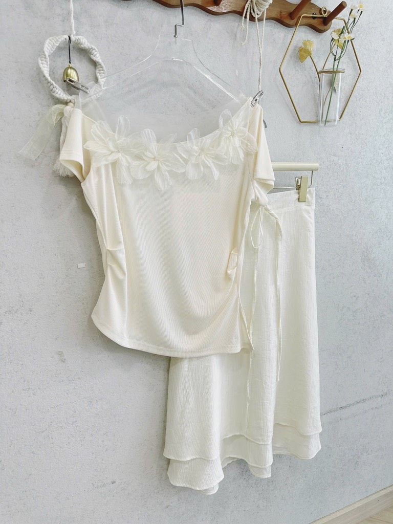 🍀 SET BỘ ÁO TĂM LEN GẮN HOA MIX CHÂN VÁY 2 LỚP 🌱
