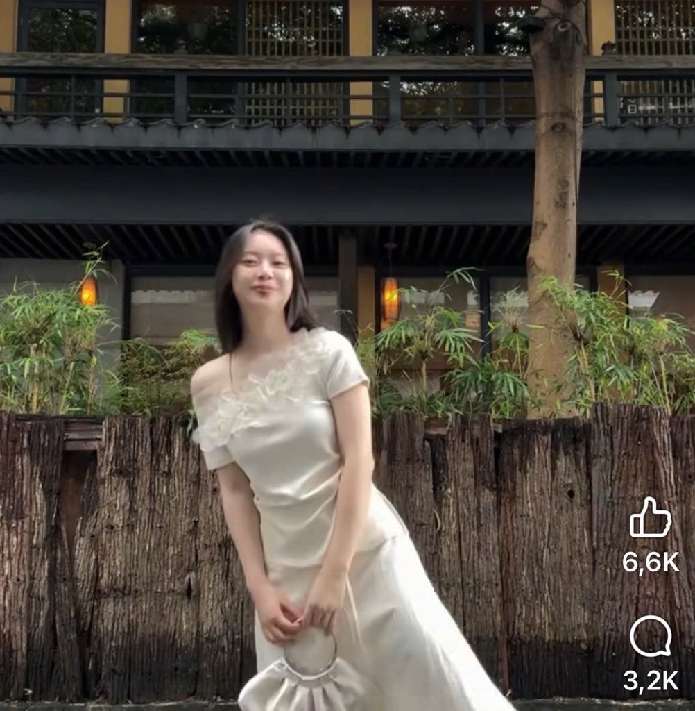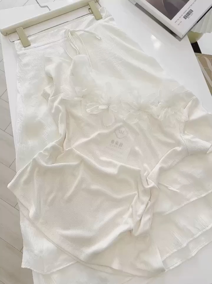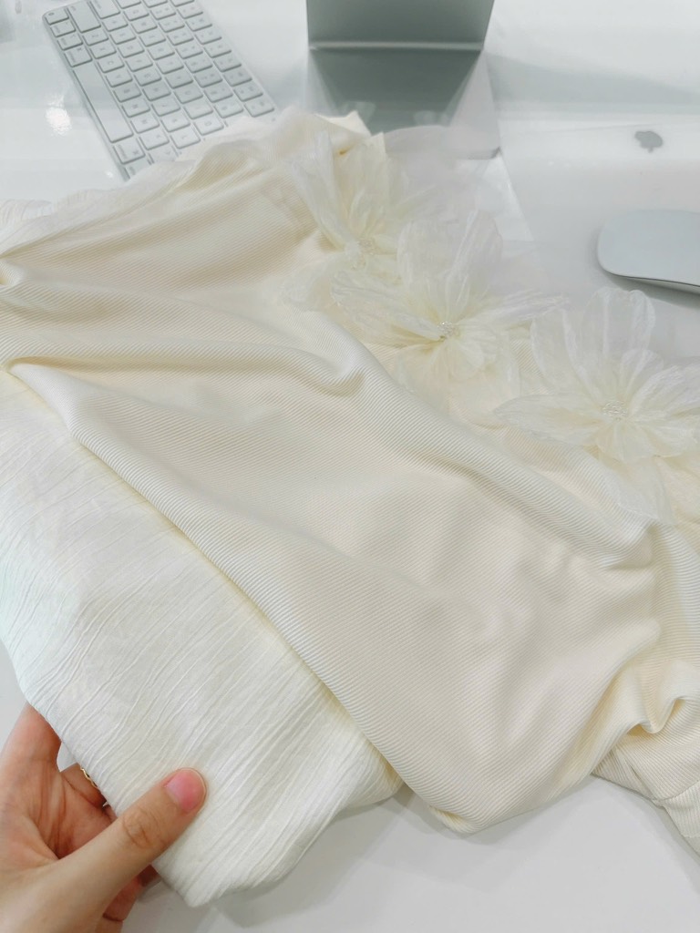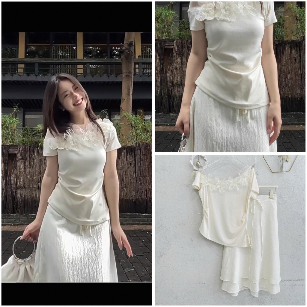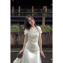 🌿 Chân váy hai lớp may tỉ mỉ cẩn thận , tone kem nhẹ nhàng