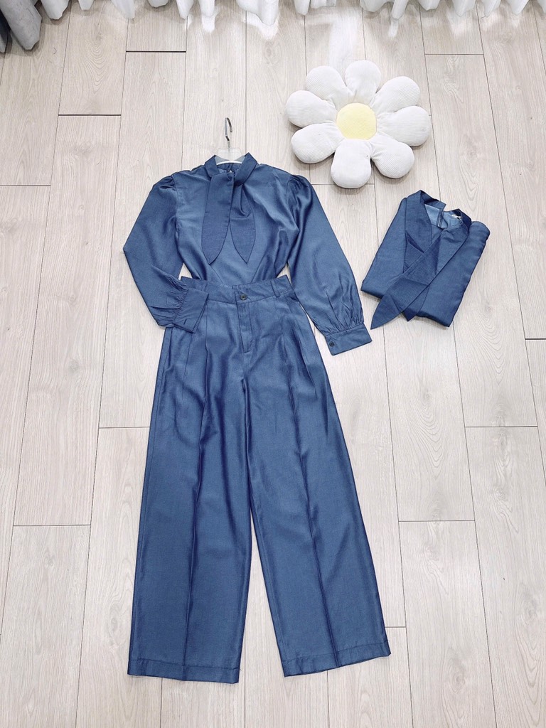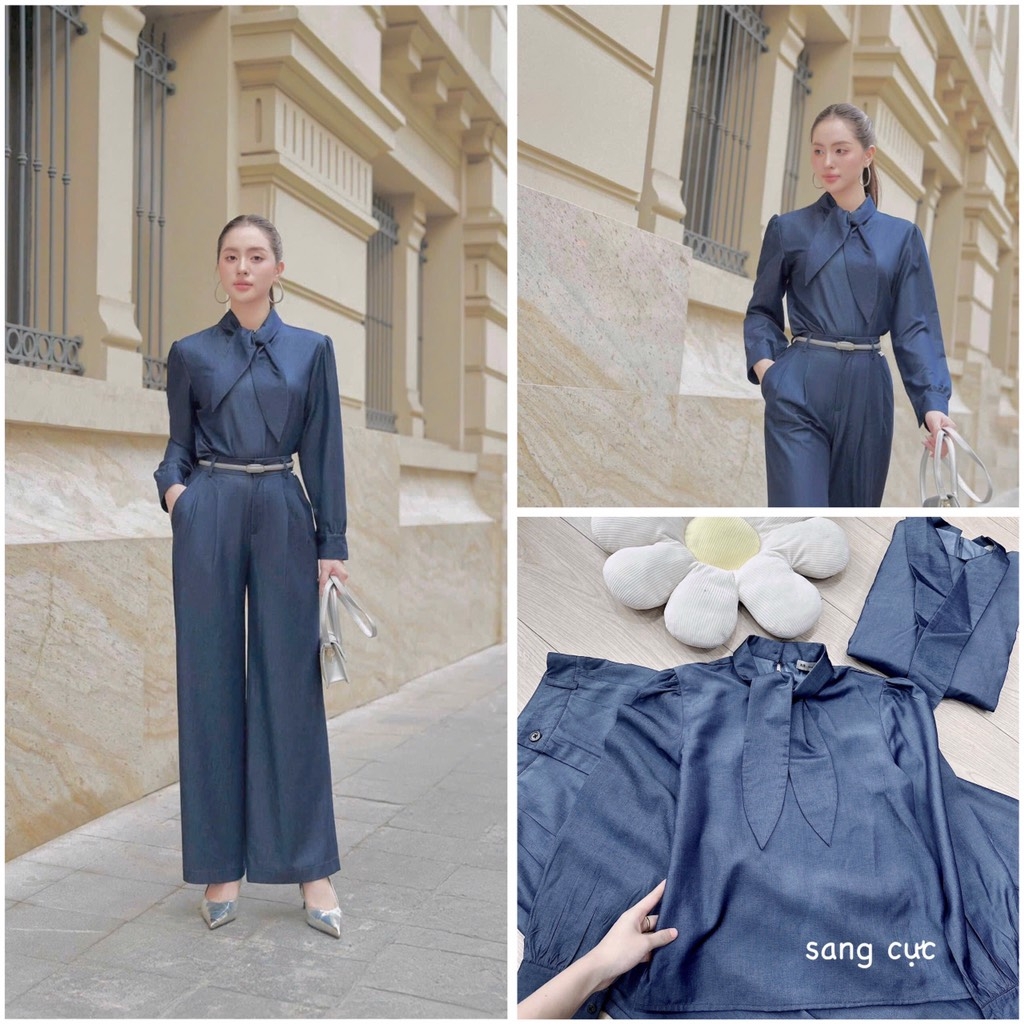 ☘️ Thiết kế đúng sang , dáng chanh xả , quần suông hack chưn. Cổ cao kín gió, nơ xinh xinh buộc vạt tiểu thư ! Hợp lí cả mầu sắc vẫn nội dung nhé 😍😍😍