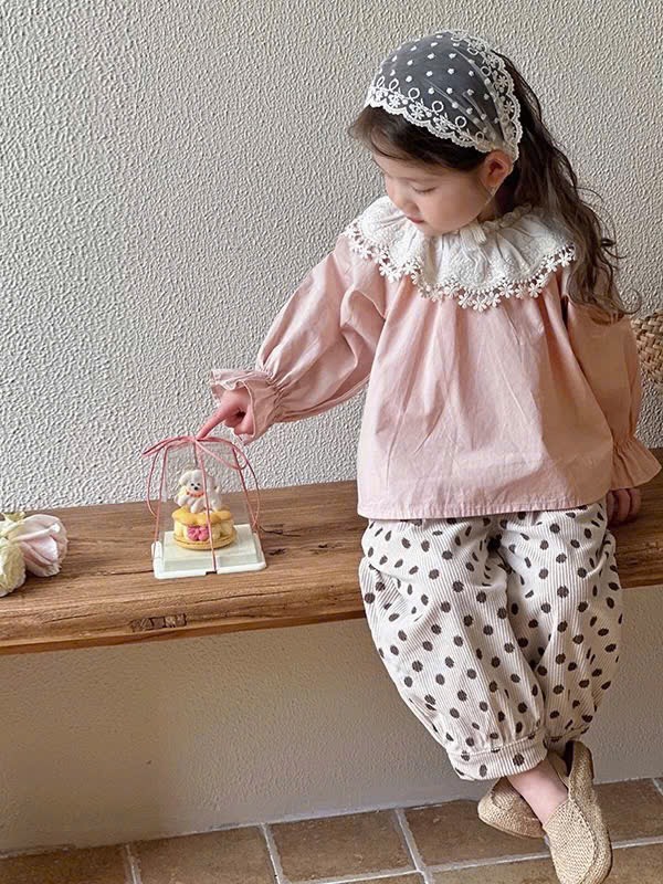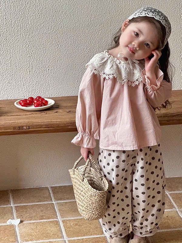 Áo thô mềm cổ ren phối quần bom tăm nhung