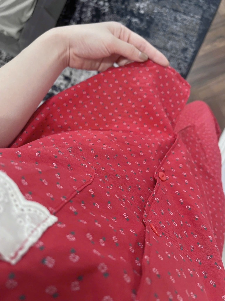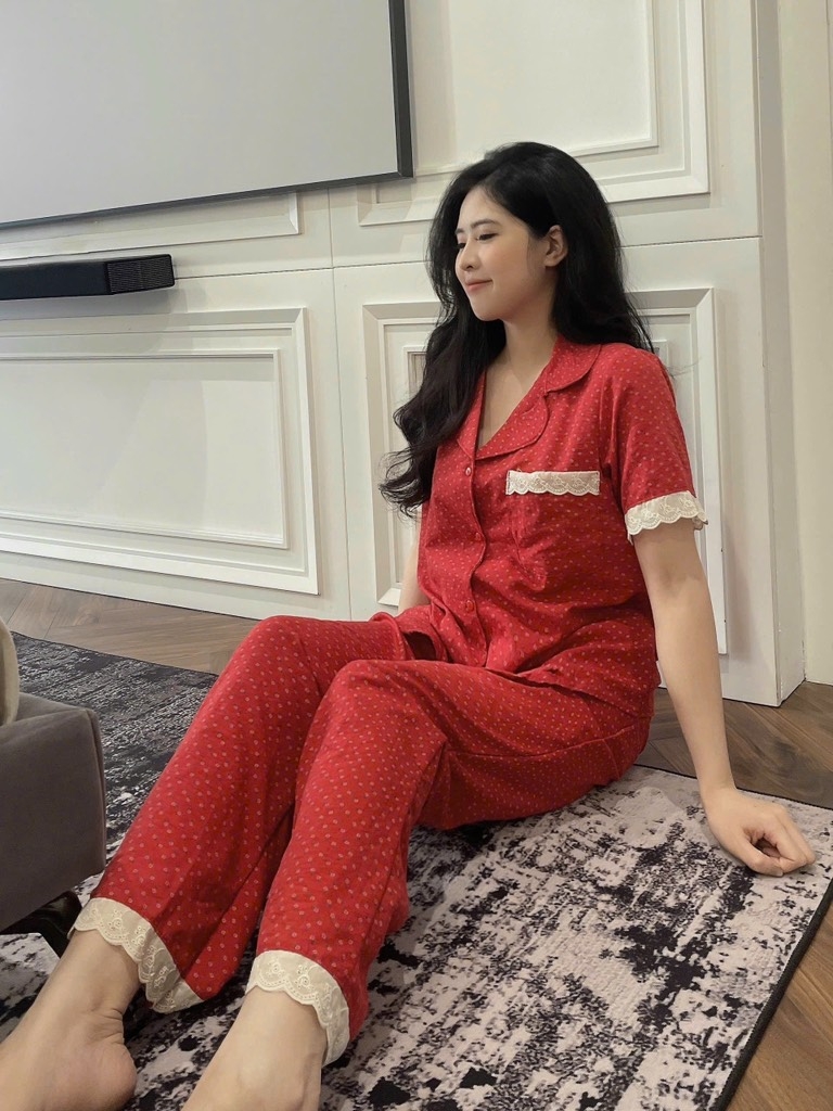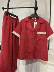 💯💯 BỘ ĐỎ CHẤM BI VIỀN REN QUẦN DÀI