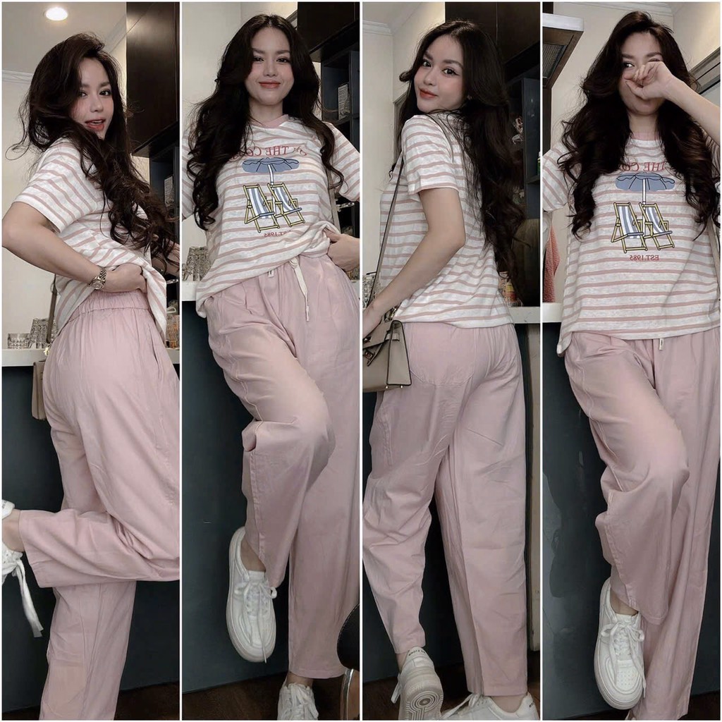 Set gôm ca áo, quần dáng baggy lên phom siêu gọn. Vừa nhẹ mát ma tiện mặc đi đâu cũng okeee. Vưa xinh vừa gầy cac chế a khỏi lăn tăn mix gi
