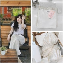 🍀 SET BỘ KẺ ỐNG SUÔNG CẠP CHUN PHẲNG MIX ÁO PHÔNG 🌿