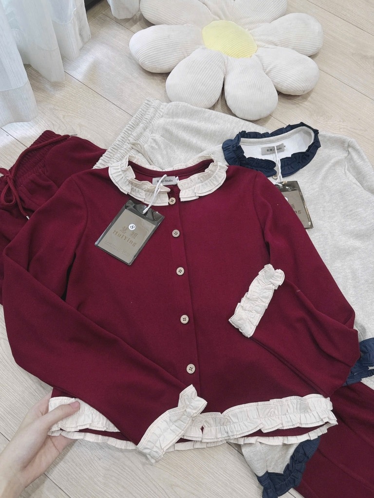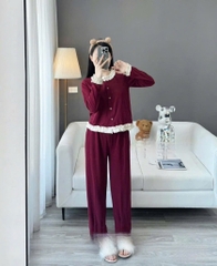 ☘️SET BỘ LEN CỪU BÈO CỔ GẤU ÁO MIX QUẦN SUÔNG ☘️