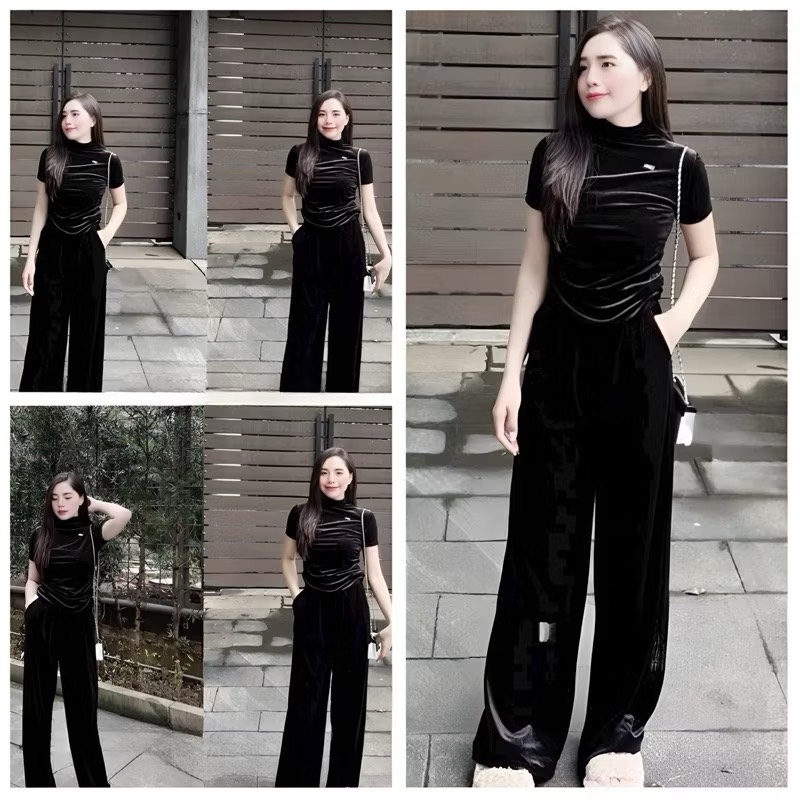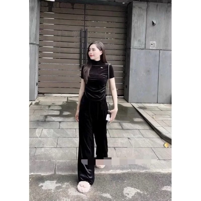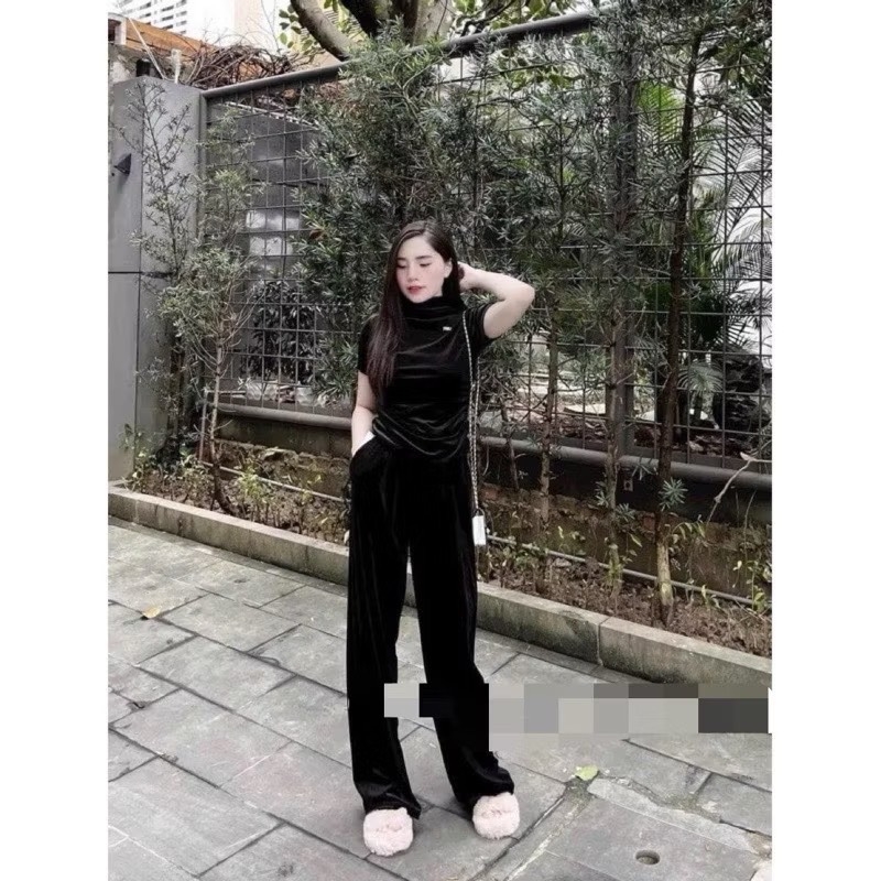Set bộ nhung này mặc lên sang thì khỏi nói nhé các chị em, chất nhung dày dặn tôn dáng