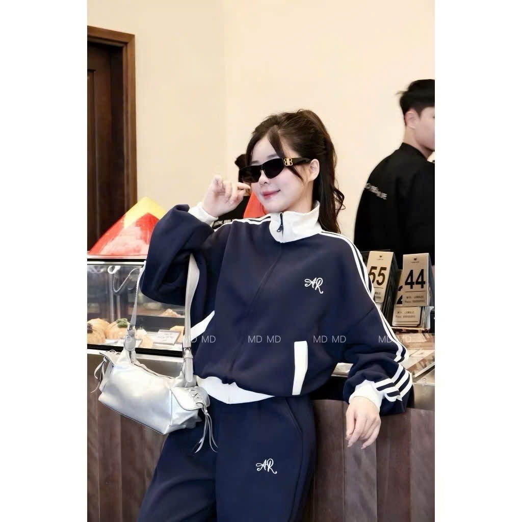 ‼️GOM : BỘ NỈ 2 DA XANH THAN CỔ PHỐI BE