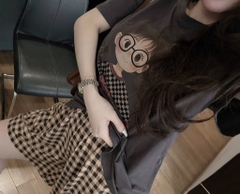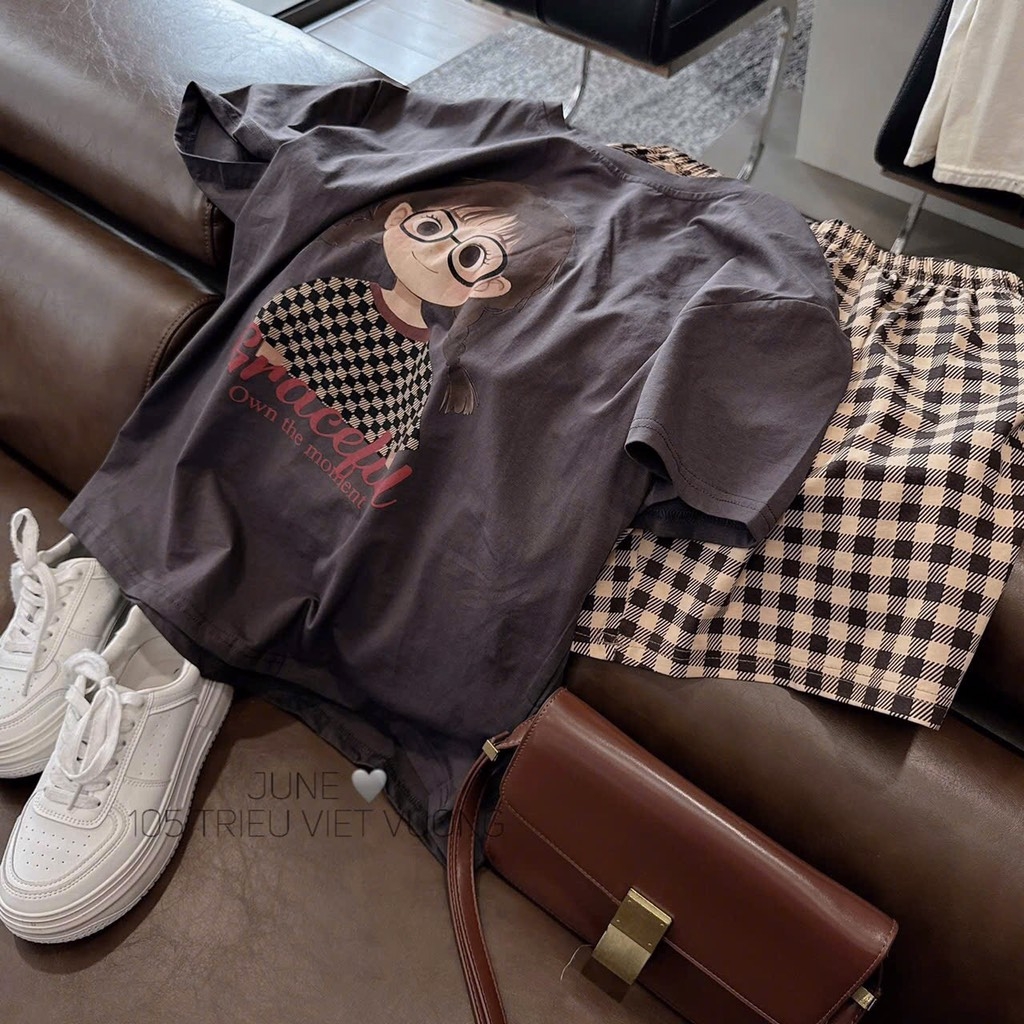 SET BỘ PHÔNG CÔ GÁI MIX QUẦN KẺ NÂU TÂY NỮ