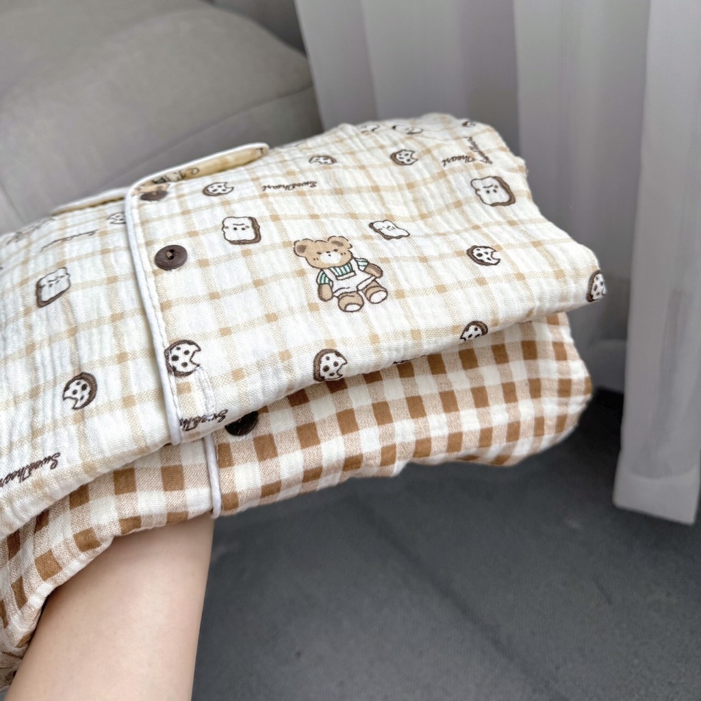 SET BỘ PIIJAMA VẢI HÀN CARO GẤU BÉ TRAI