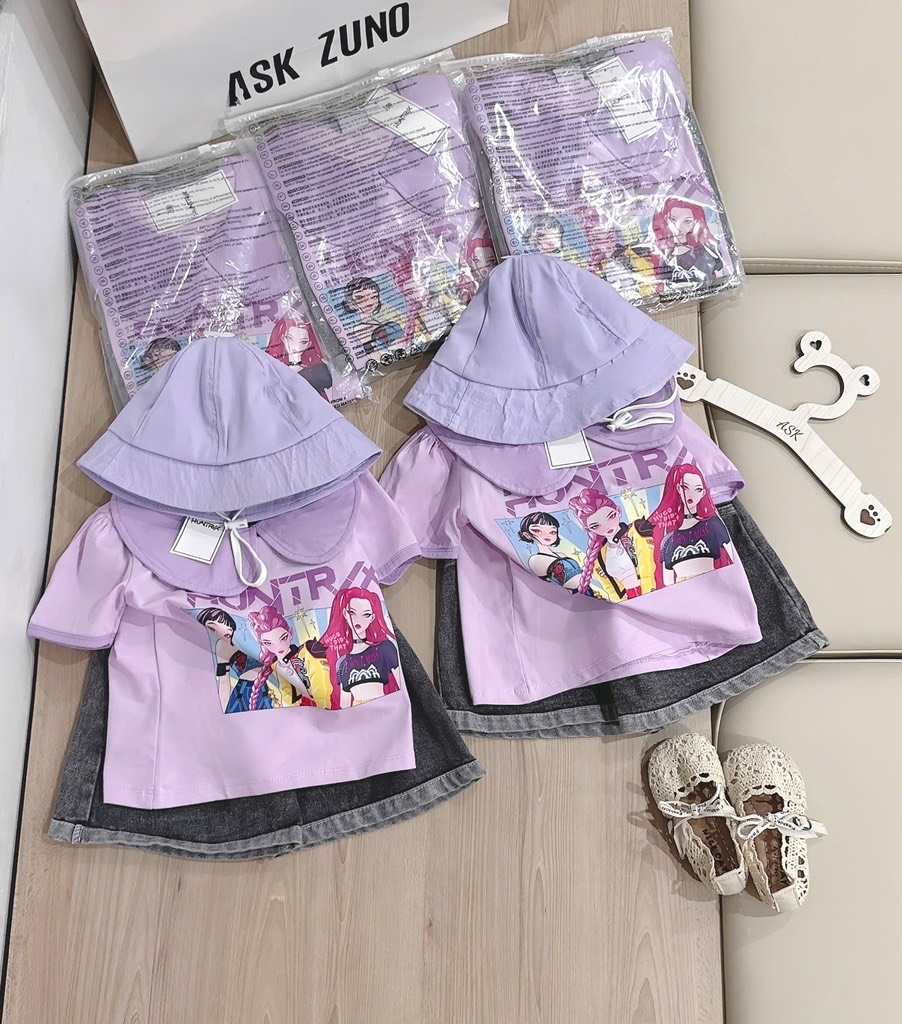 💜 Bộ gồm áo thun +quần jean + mũ vành
