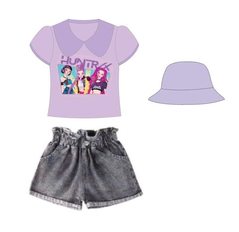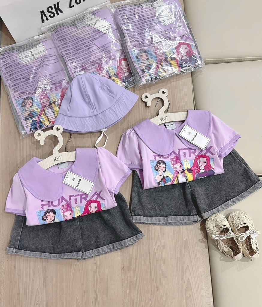 Set bé gái quần jean in HUNTRX kèm mũ ✨