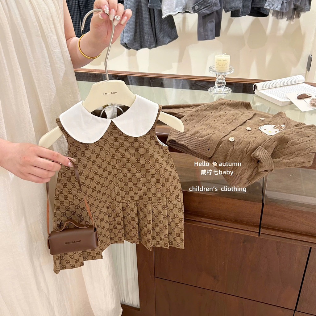 Sét caddigan kèm váy nâu tây cổ sen xinh xỉu
