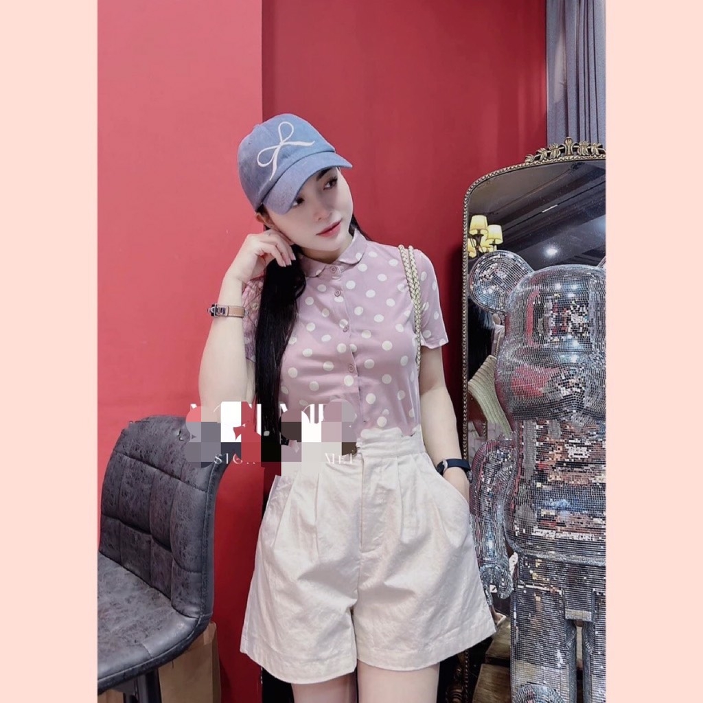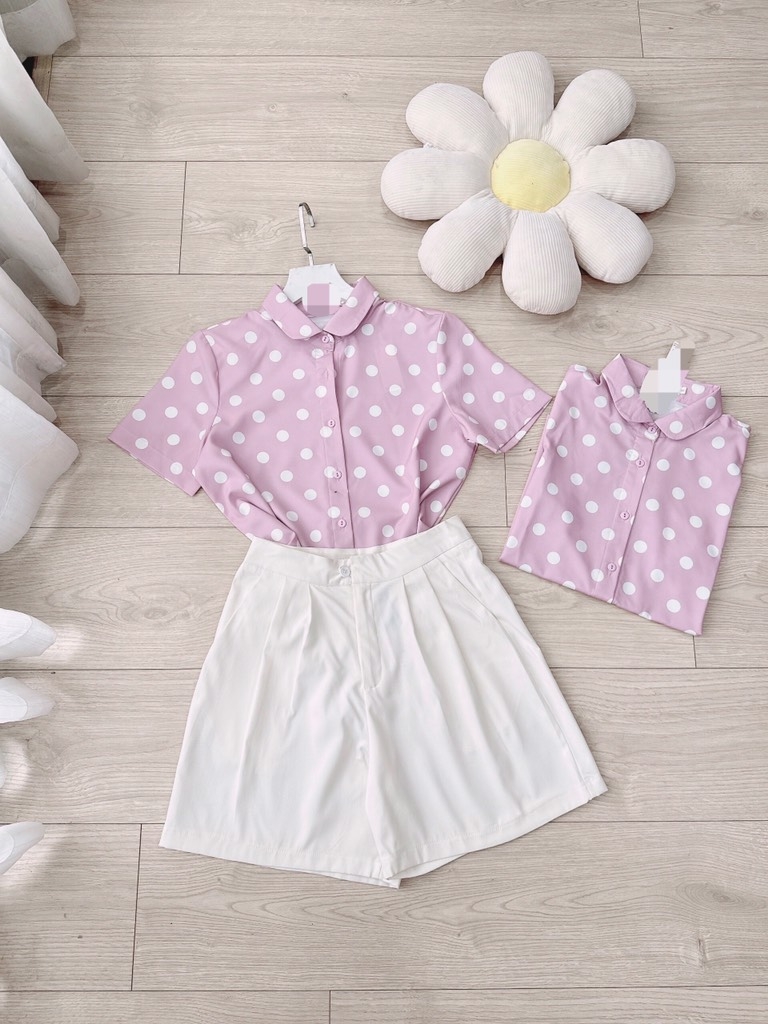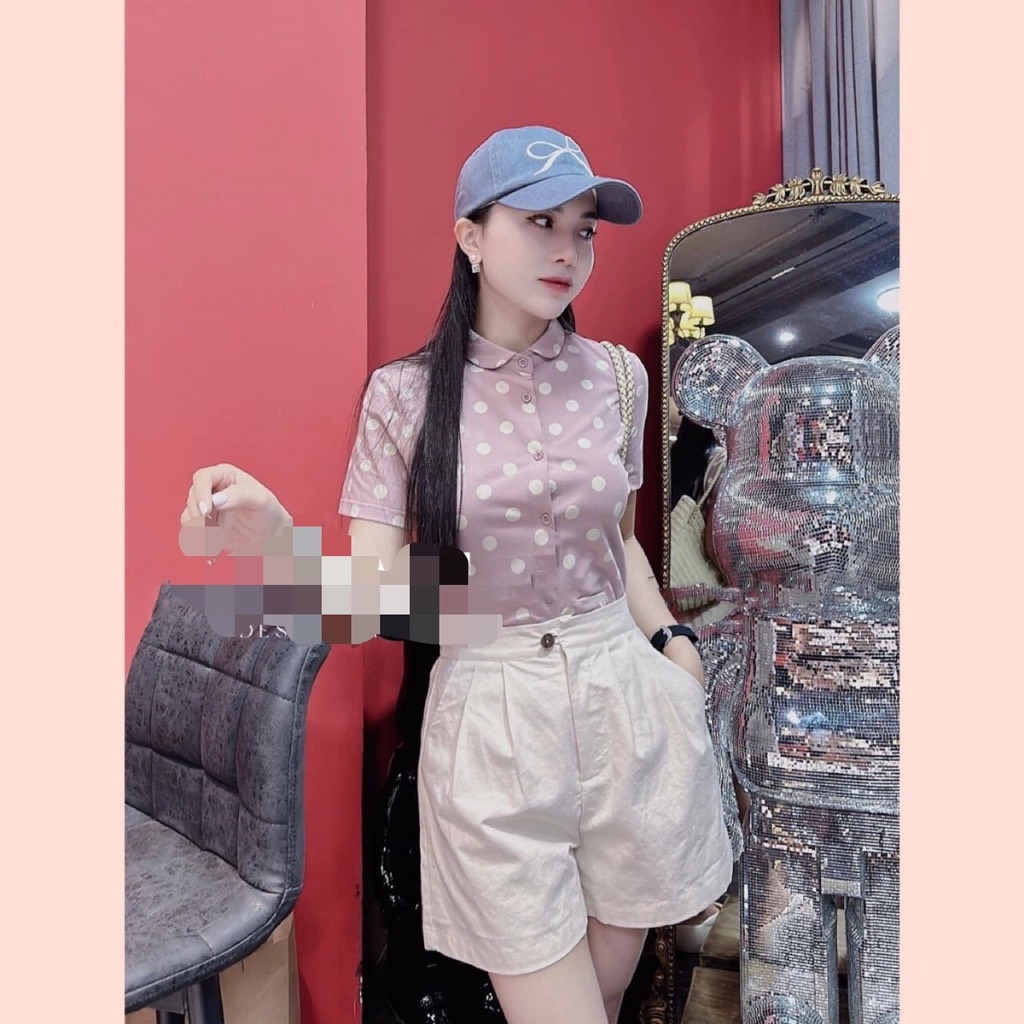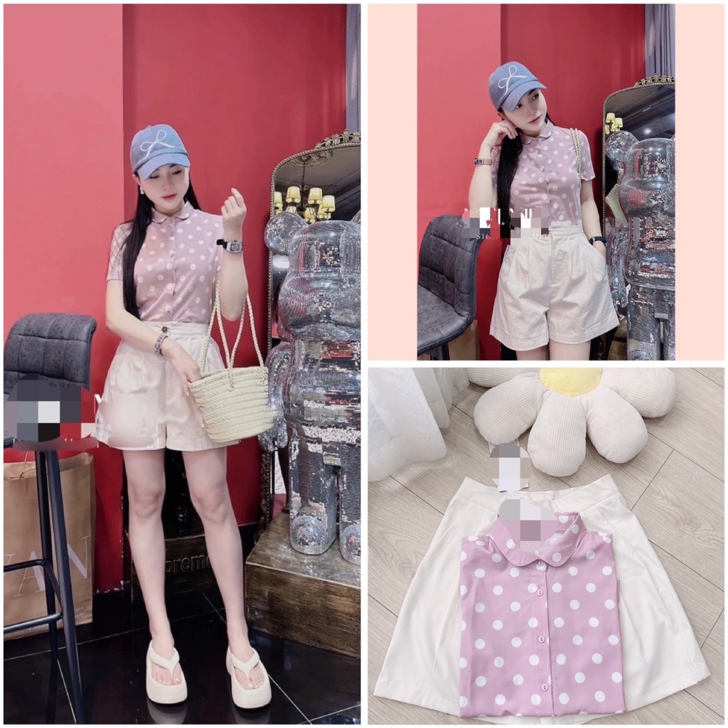 ☘️ SET CHẤM BI HỒNG CỔ SEN NHỎ MIXX SHORT KAKI 🌺