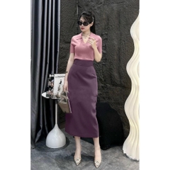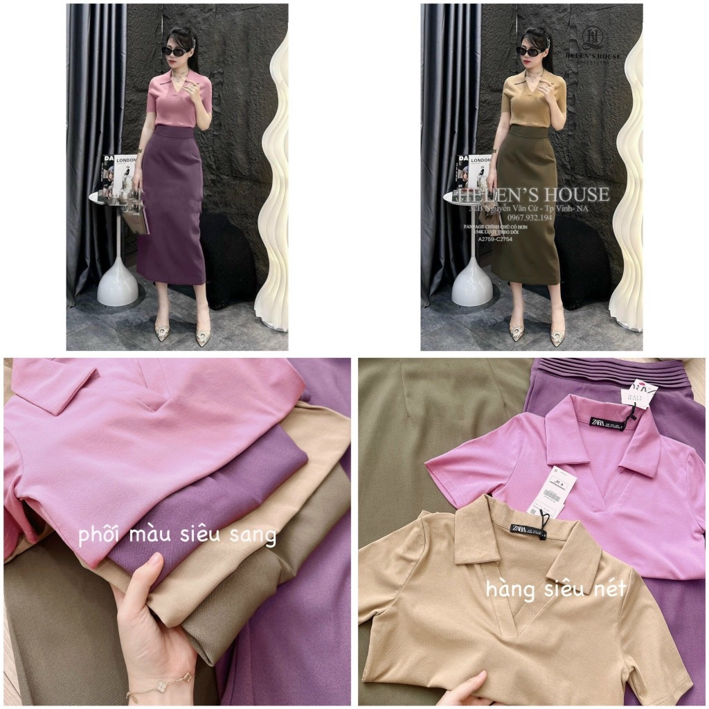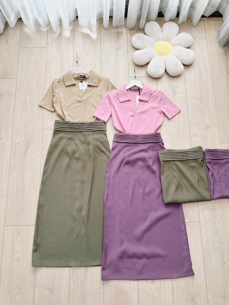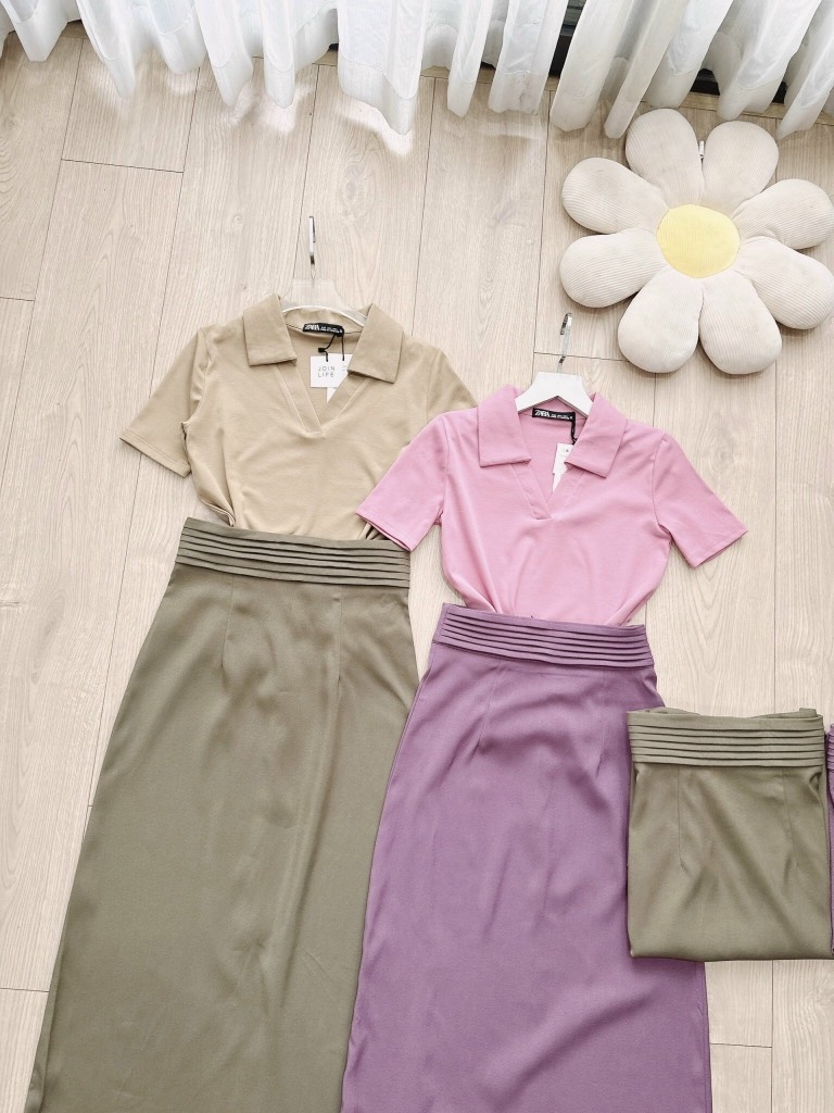 ☘️ SET CHÂN VÁY LI EO MIXX ÁO DÍP CỔ V 🌺