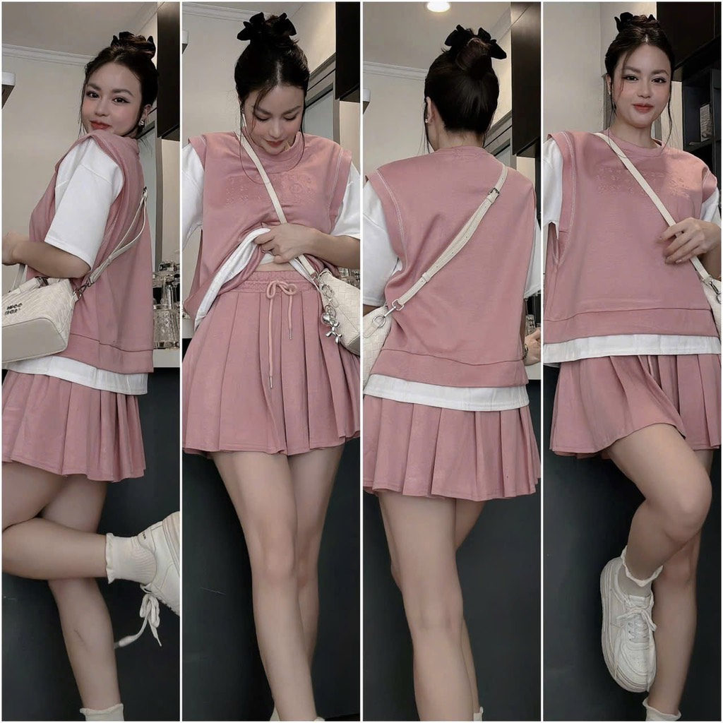 🎀SET CHÂN VÁY XẾP LI MÌ NỈ DẬP NỔI CỔ TRÒN- HÀNG QC CAO CẤP