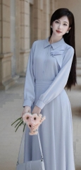 🌿Phom set dài thắt eo nhẹ, tay phồng mềm rũ, điểm nhấn cổ lệch duyên dáng kèm nơ tạo kiểu – thiết kế dành riêng cho những cô gái thích nét đẹp tinh tế, giản dị mà vẫn sang.”