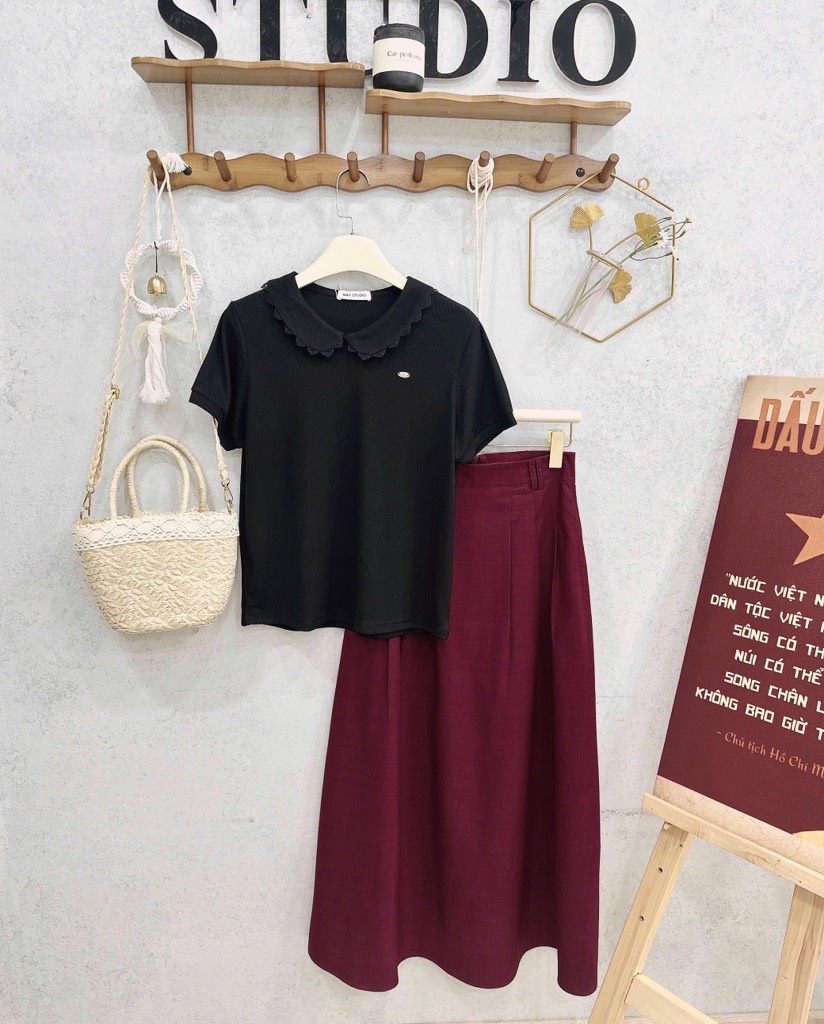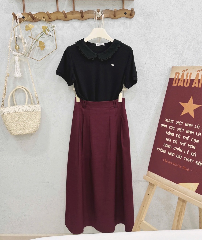 🌿 Chân Váy đỏ li nhẹ nhàng, dễ phối – mặc đi picnic, cà phê hay lễ cũng chuẩn nàng thơ