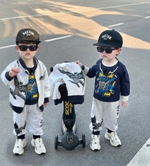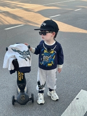 Phối màu ghi – navy siêu sang, quần in Batman hai bên cực ngầu 💥