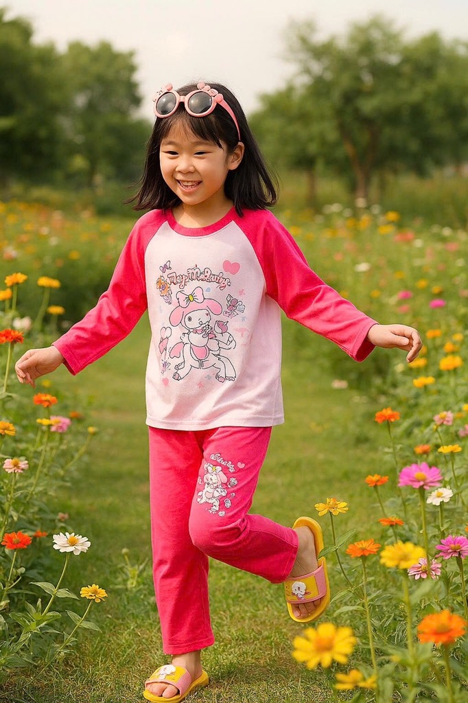 Chất cotton xuất mềm mịn, thấm mồi hôi tốt. Vải co giãn thoải mai, cạp chun quần mềm dễ chịu. Hình in nhiệt bao giặt máy khôn bong tróc.