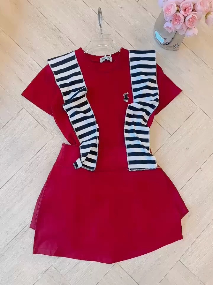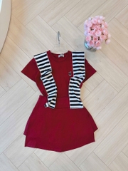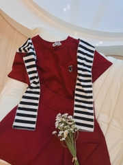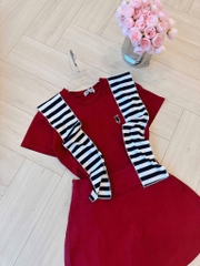 🌷Bộ chân váy đỏ đô nổi - bật phối khăn sọc đen trắng cá tính – điểm nhấn cực trendy!