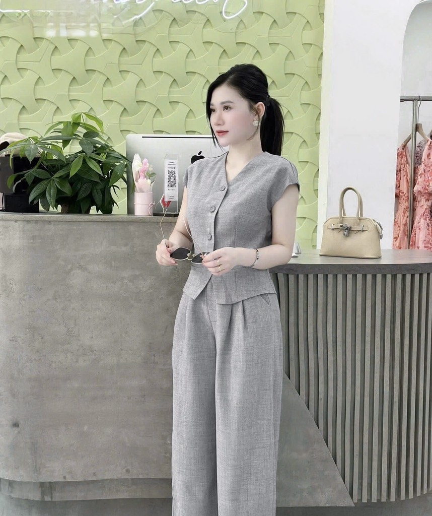 🌷Quần Form suông đứng dáng – tôn dáng tinh tế, hack chân cực kì . Áo eo nhẹ tôn dáng , mix cúc bọc hịn, may hai lớp cực kì tỉ mỉ !