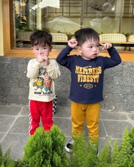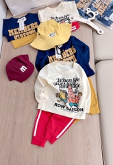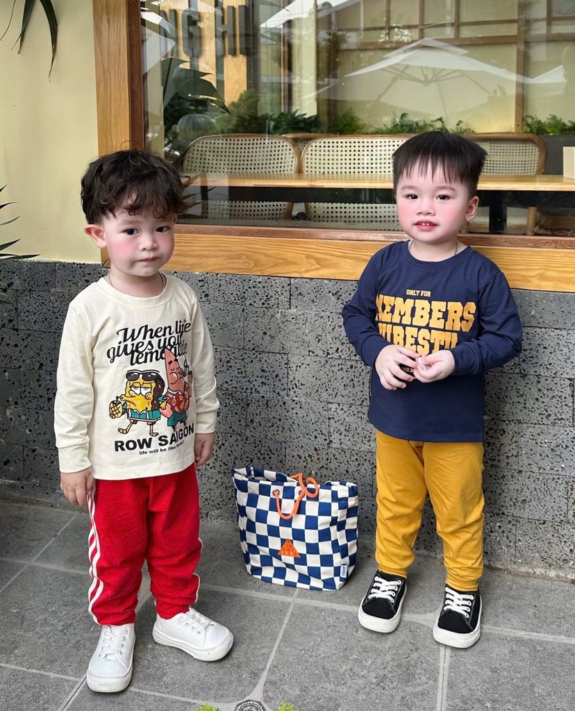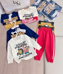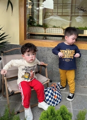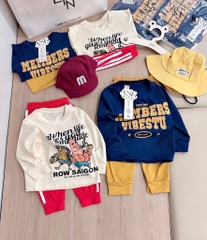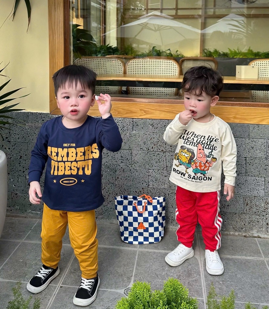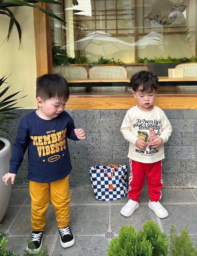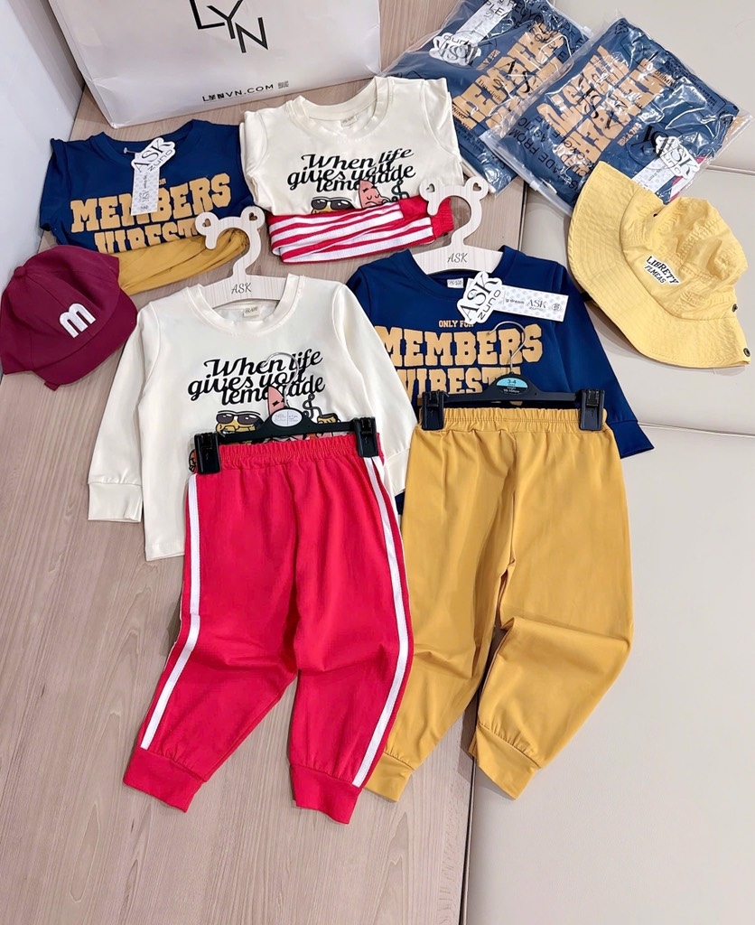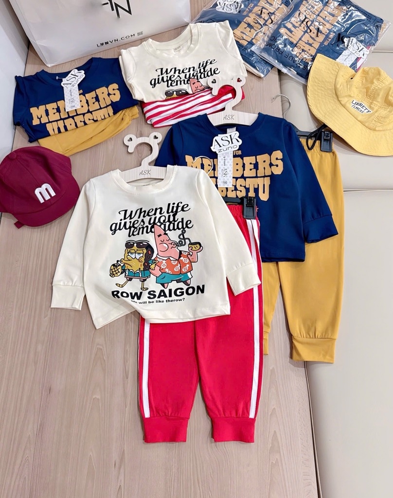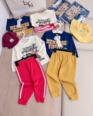 Set 2 bộ tone xanh than vàng và kem đỏ mix sọc thể thao chất cotton tàu cho bé 👉👉👉#1xx/set 2bộ