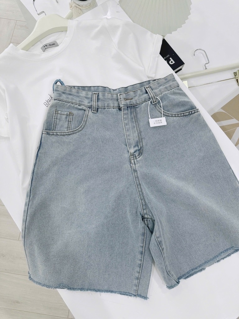 🌞 SET JEAN CẮT GẤU MIX ÁO PHÔNG TAY GẬP🌷