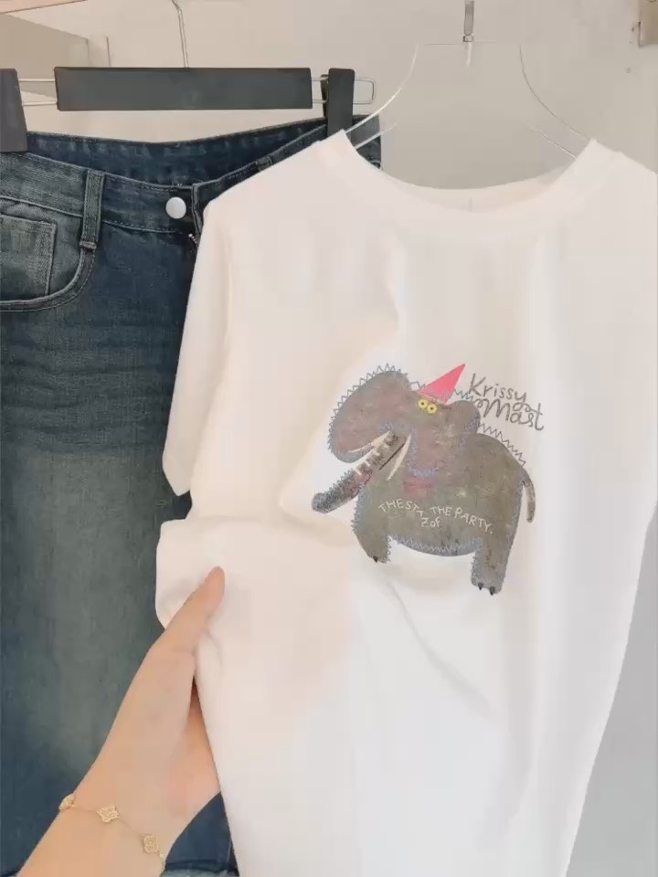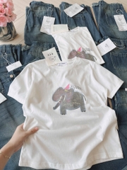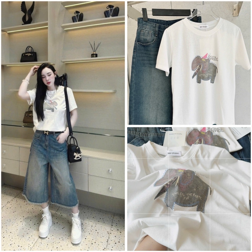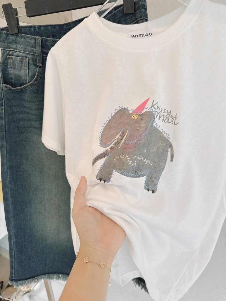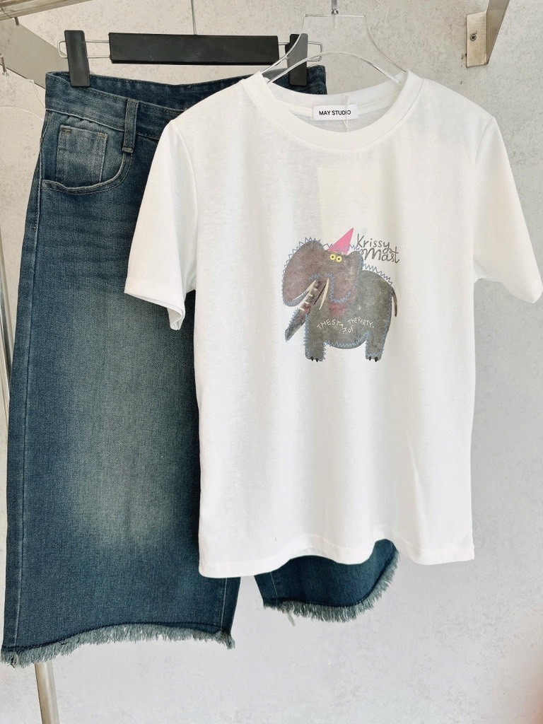 Áo thun in voi đáng yêu phối cùng quần bò ngố cắt tua nhẹ – style chất lừ mà vẫn dễ thương hết nấc.