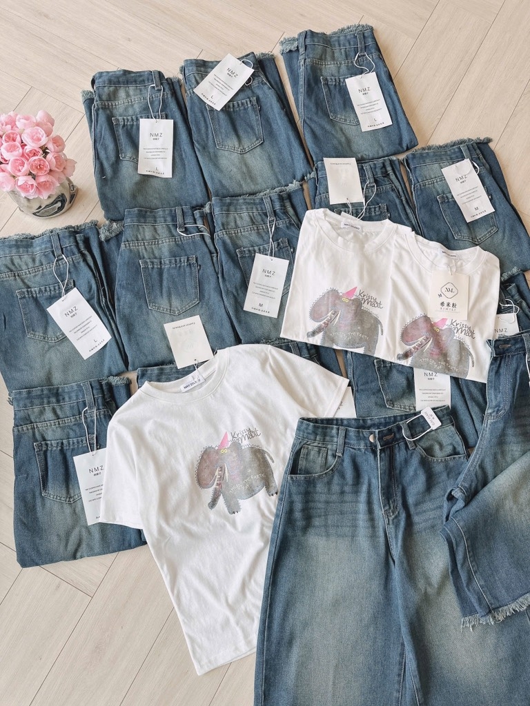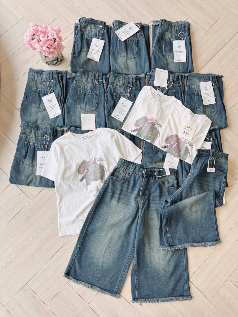 ☘️ SET JEANS NGỐ CHÂN RUA MIX PHÔNG GIẤY VOI 🌿