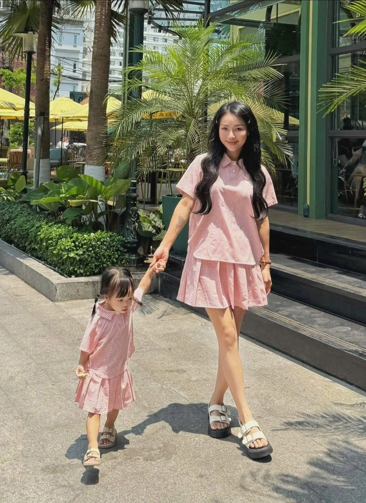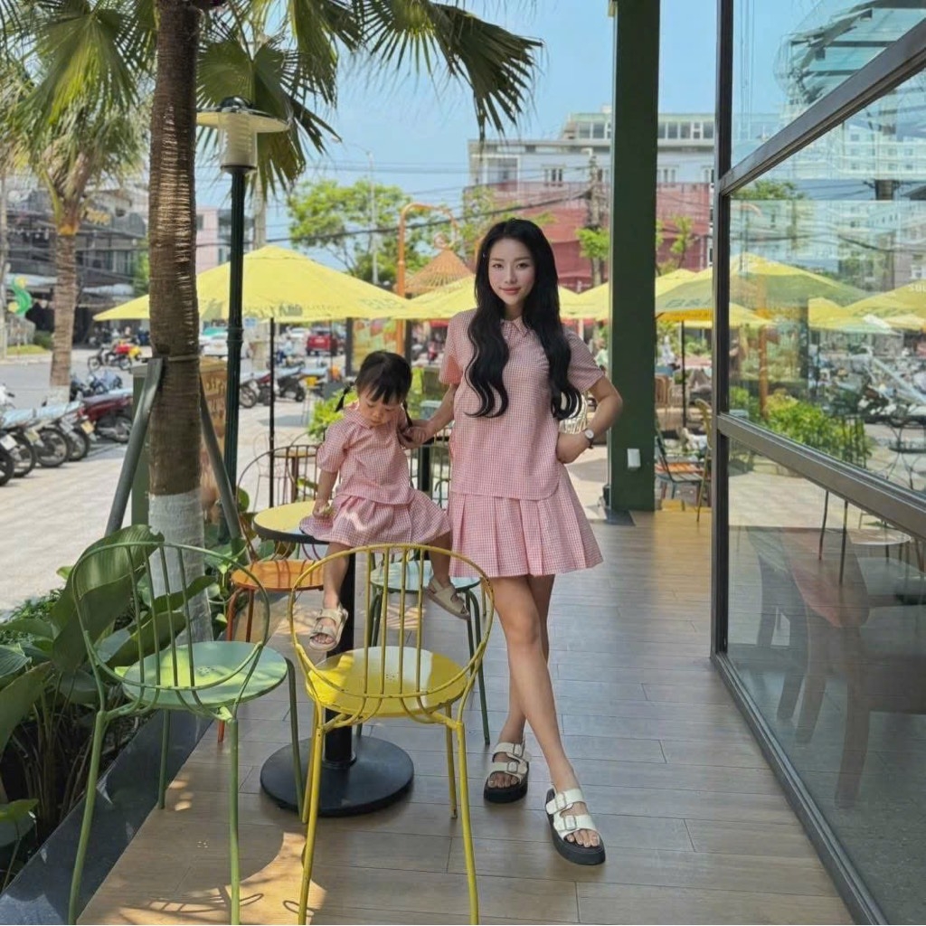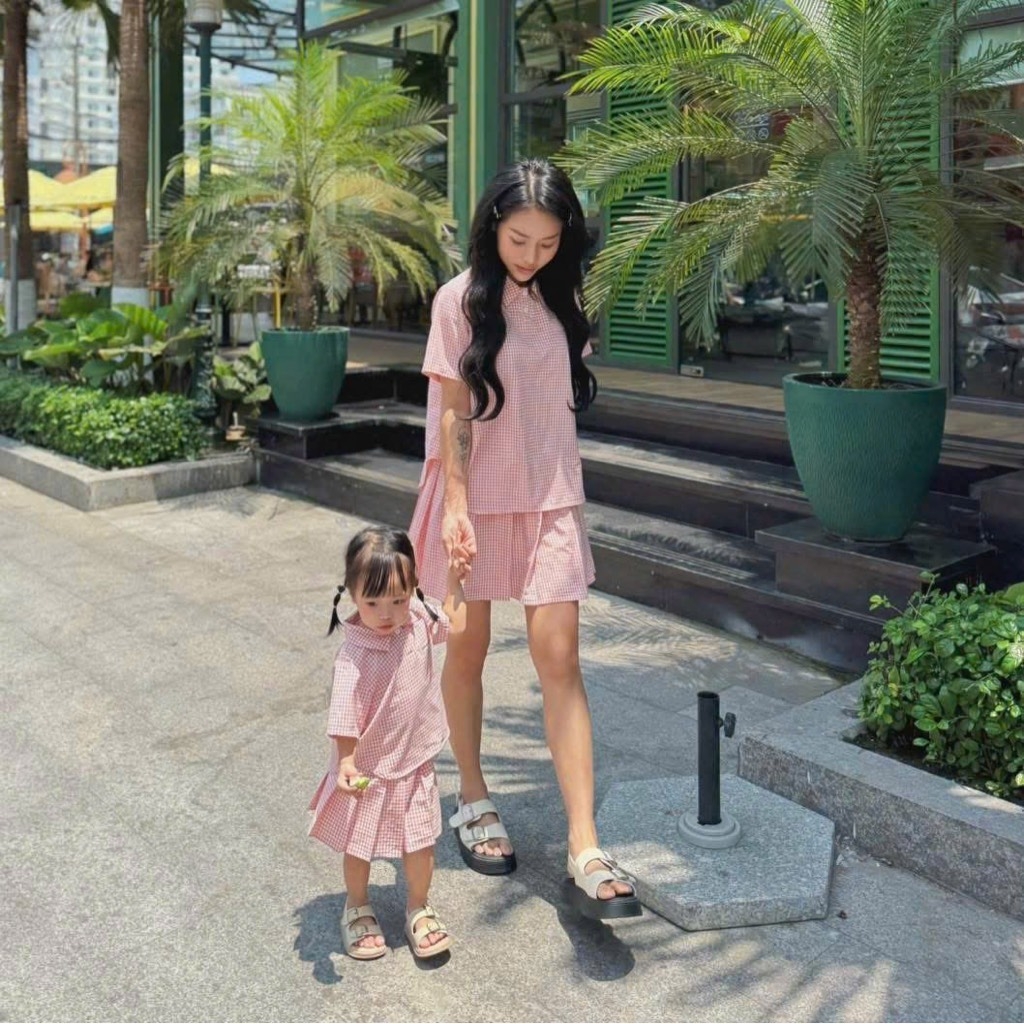 Mẫu kẻ siêu dễ mặc cho cả mẹ và bé. Kiểu dán basic mặc lên sang yêu, tone màu thì cưng xỉu.