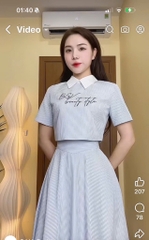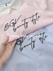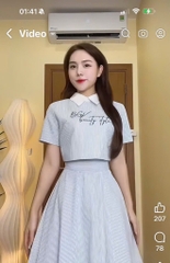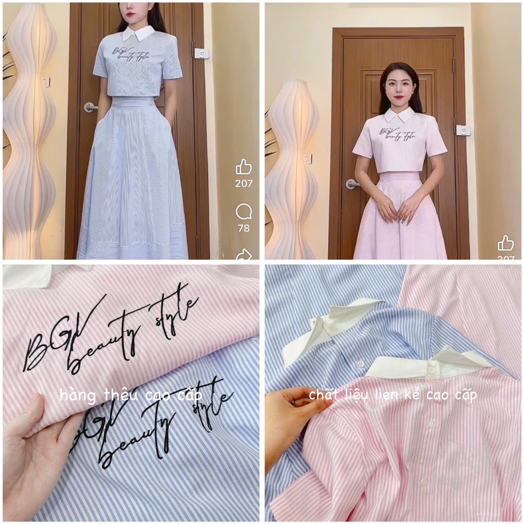 Thiết kế xịn xò , áo phối cổ thêu xịn trước ngực . Dáng cạp cách điệu tạo hiệu ứng v2 minhon xinh lắm !