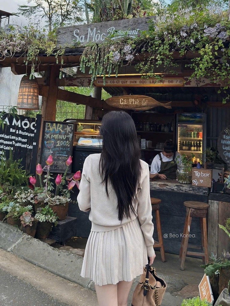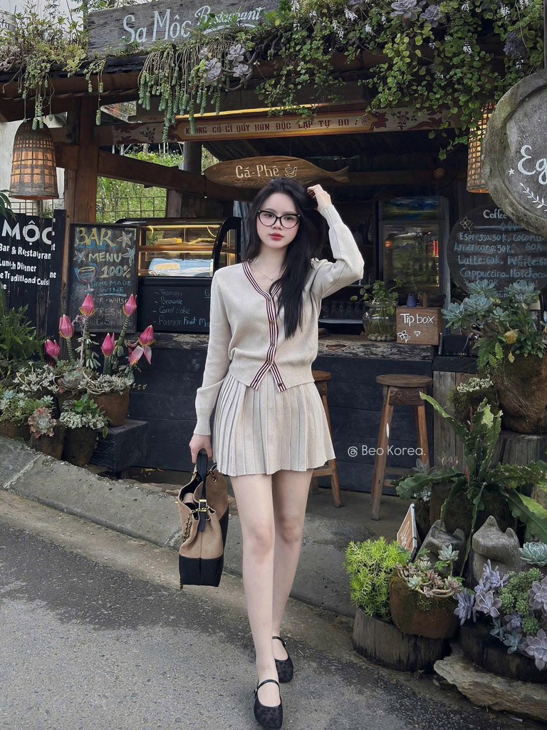 ✨ SET LEN ÁO CARDIGAN MIX CHÂN VÁY XẾP LY✨