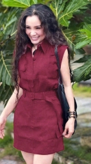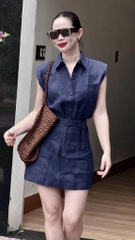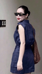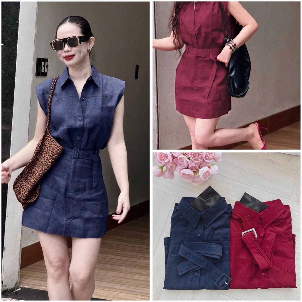 SET linen cổ sơ mi phối đai – thanh lịch, túi 1 bên trẻ trung hack tuổi