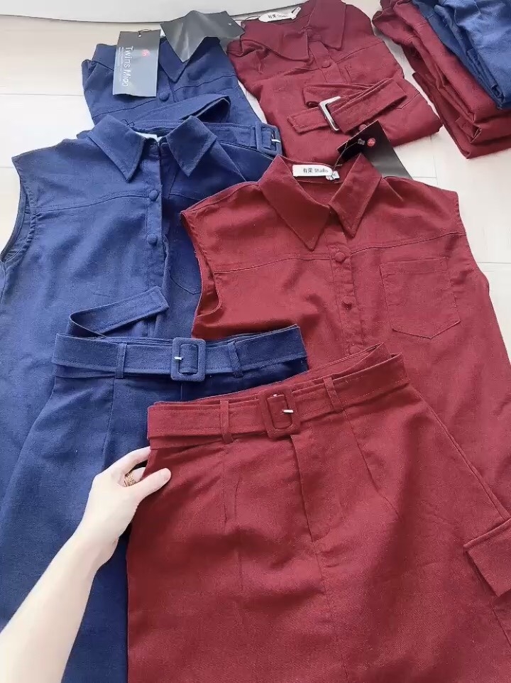 🌿Có 2 màu: xanh navy & đỏ rượu sang chảnh, cúc bọc - đai đồng bộ mầu sang chảnh lên đồ đẳng cấp cực kì !