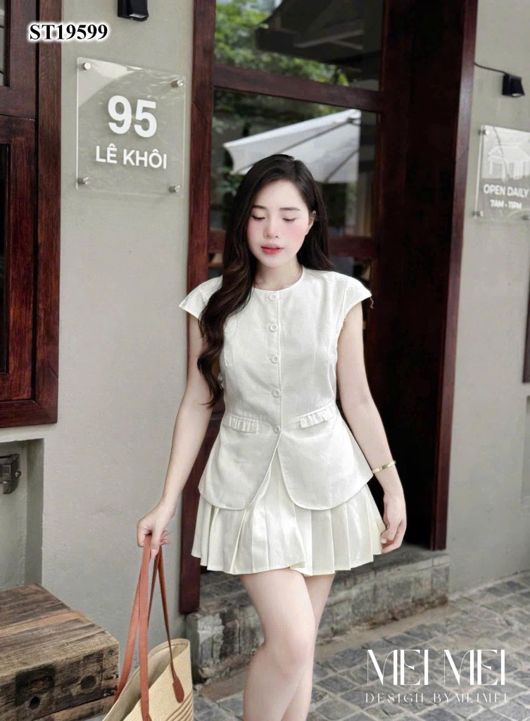 SET LIEN KÈM CHÂN VÁY NGẮN XẾP LY NỮ