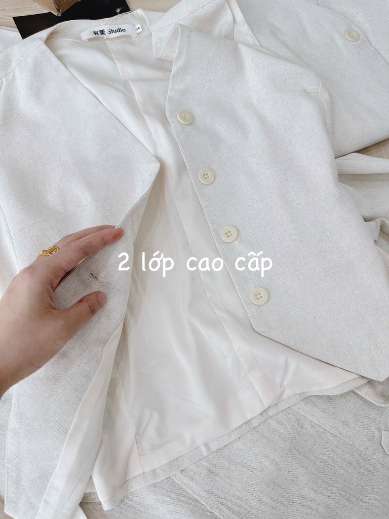 🌿Chất vải linen nhẹ mát, áo may hai lớp tỉ mỉ xịn xò cực kì !