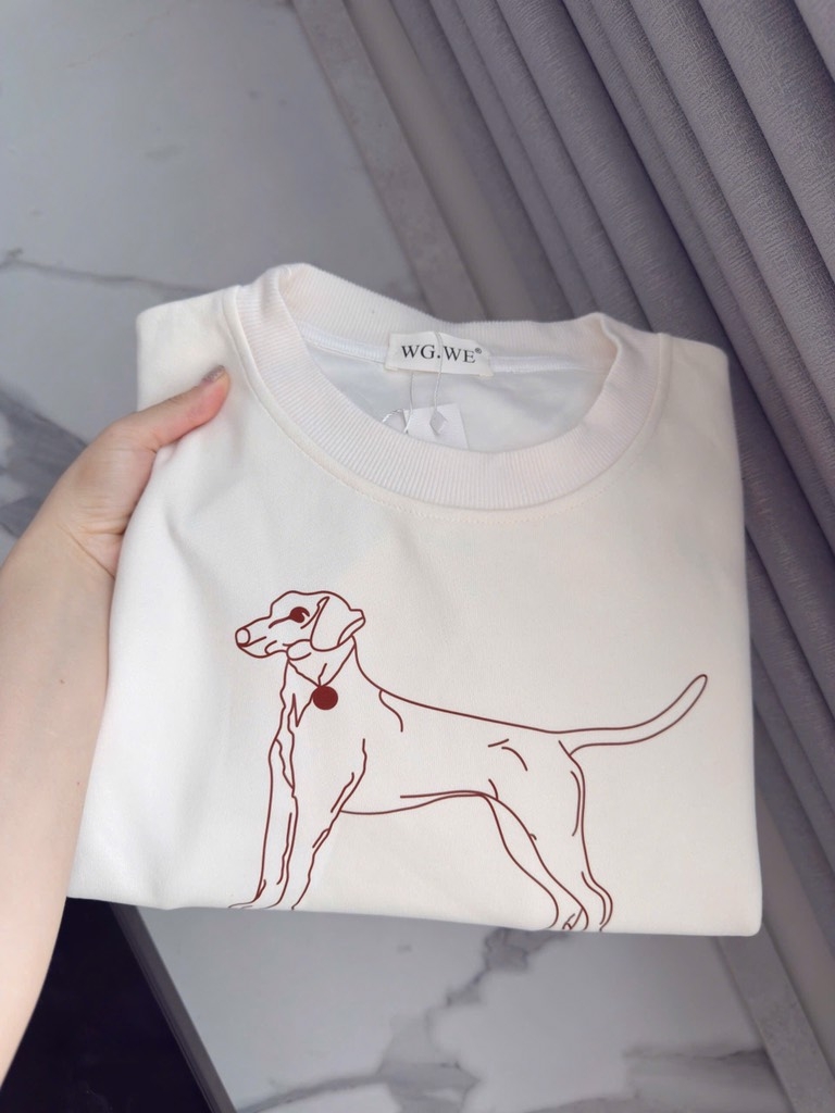 Lên bộ tặng khăn luôn ạ, chất nỉ mềm đanh lắm, hình in pét nhẹ nhàng , màu be trẻ trung ☘️