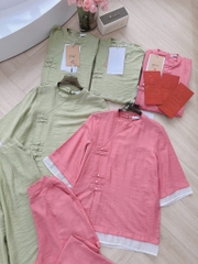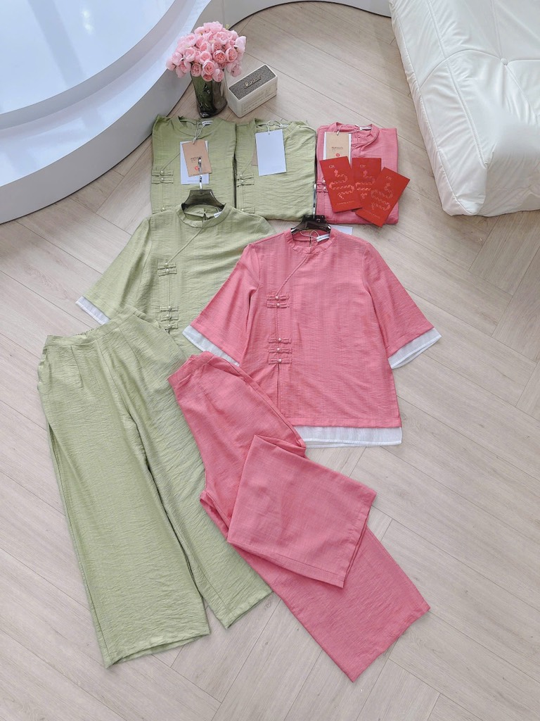 🌿 Quần xịn xò – cạp trước, chun sau, có túi tiện lợi – mặc lên cực kỳ duyên dáng, thanh tao .