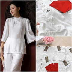 🔸 Chất liệu gấm cao cấp – mềm mại, mịn màng, họa tiết vân chìm tinh tế, tạo nên nét thanh tao thuần khiết.
