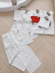 Pháp phục trắng tinh khôi – nhẹ nhàng mà thanh khiết, như gió xuân mang theo sự an nhiên đến mọi nẻo đường. Đầu năm lễ Phật, tấm lòng tịnh tại, từng bước đi càng thêm nhẹ nhàng khi khoác lên mình bộ pháp phục sang trọng mà giản dị.