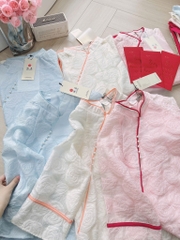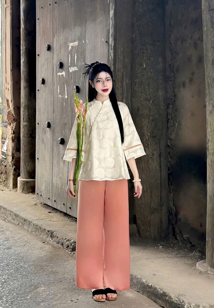 Chất vải tằm dệt dập nổi cao cấp, làm nổi bật sự chanh xả , hàng may cẩn thận hai lớp cầu kì , tỉ mỉ viền từng đường kim mũi chỉ.