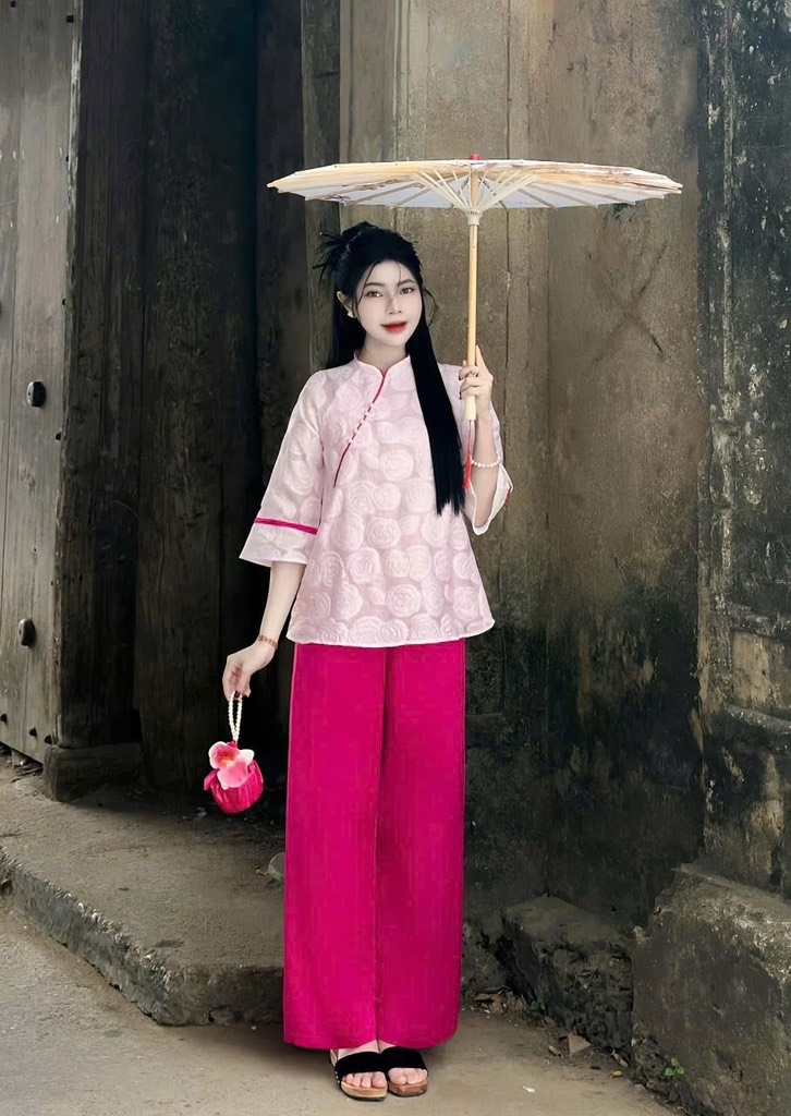 🍀 SET PHÁP PHỤC HOA HỒNG VIỀN 2 LỚP 🌿