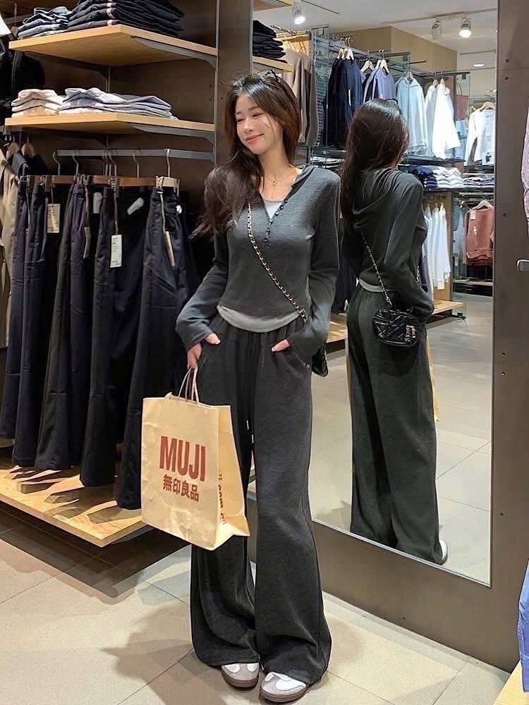 Chất thun mềm mặc thoải mái. Quần cạp chun ạ.