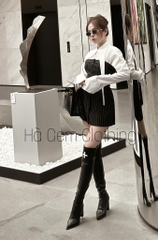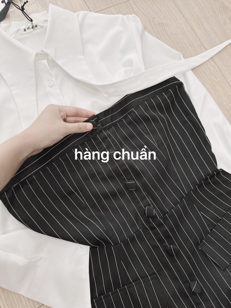 Chất vải sọc kẻ hot đình đám, mầu sắc basic đen - trắng dễ mặc !