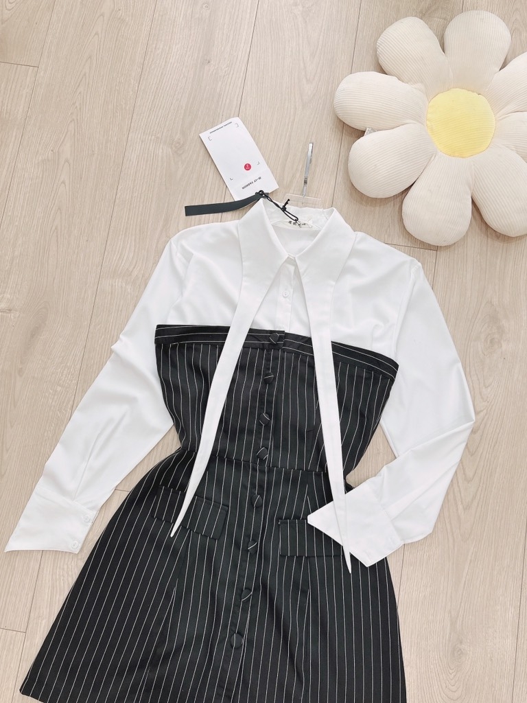 ☘️ SET VÁY CÚP MIX ÁO SƠ MI CỔ CÁCH ĐIỆU 💎