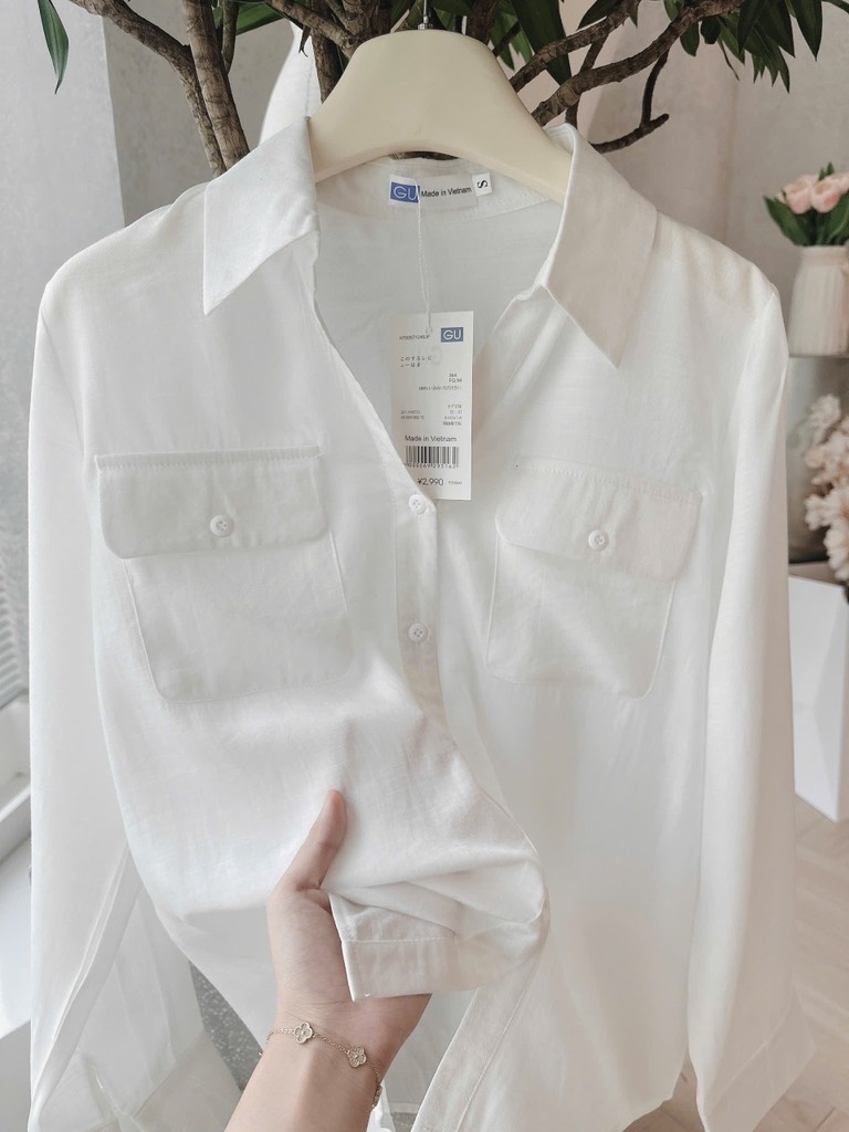 Chiếc sơ mi quốc dân đến từ GU với chất vải mềm mịn, form suông dễ mặc, phối lên set nào cũng sang xịn mịn.