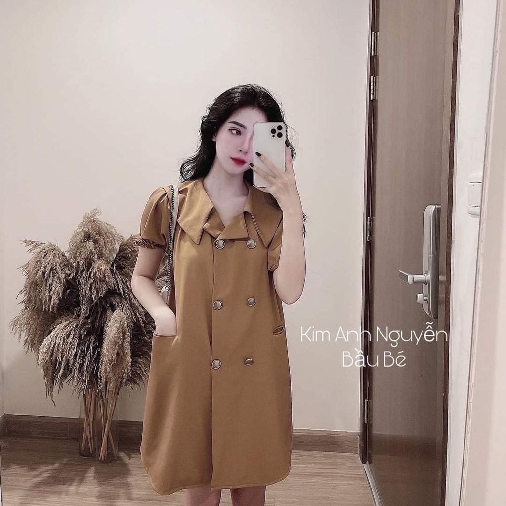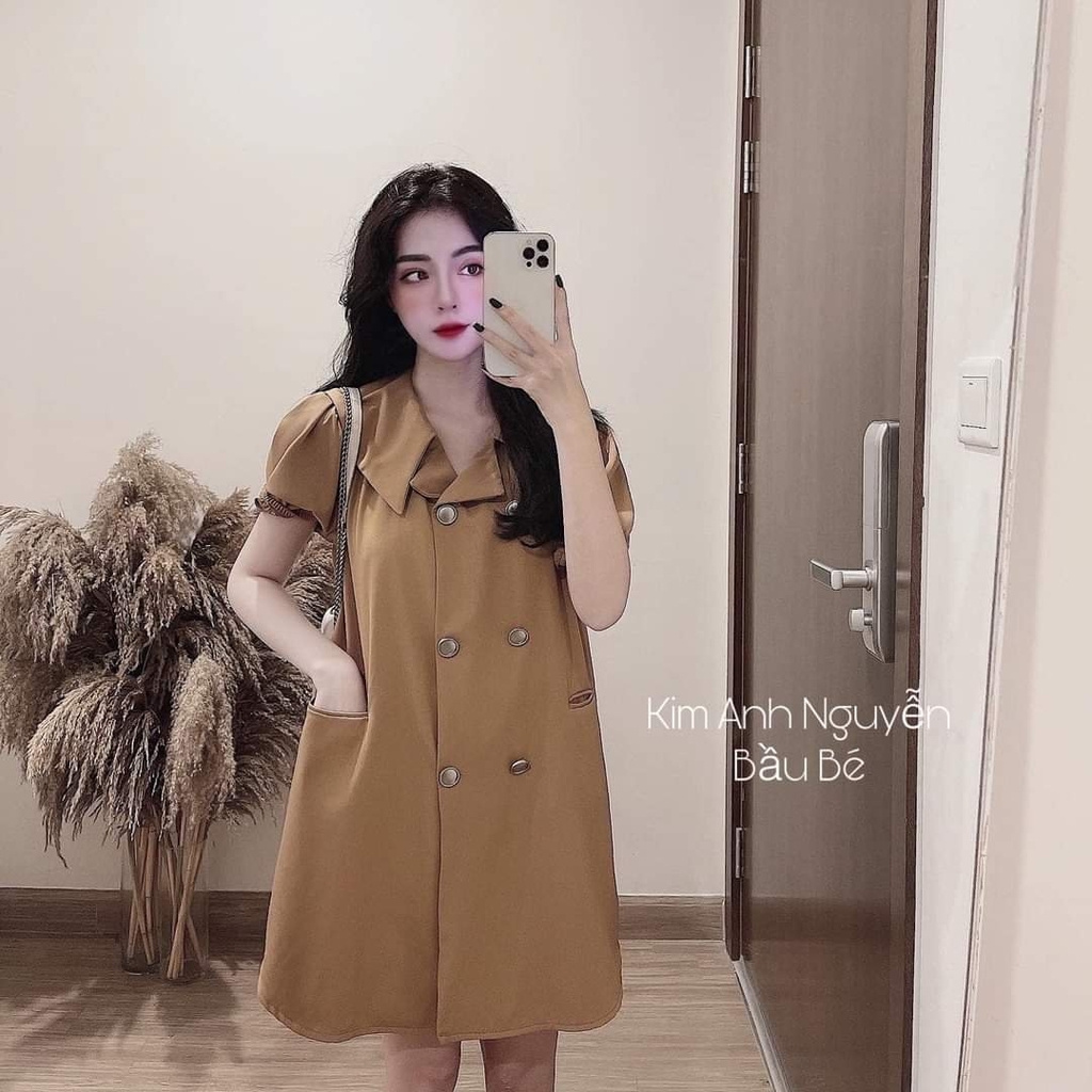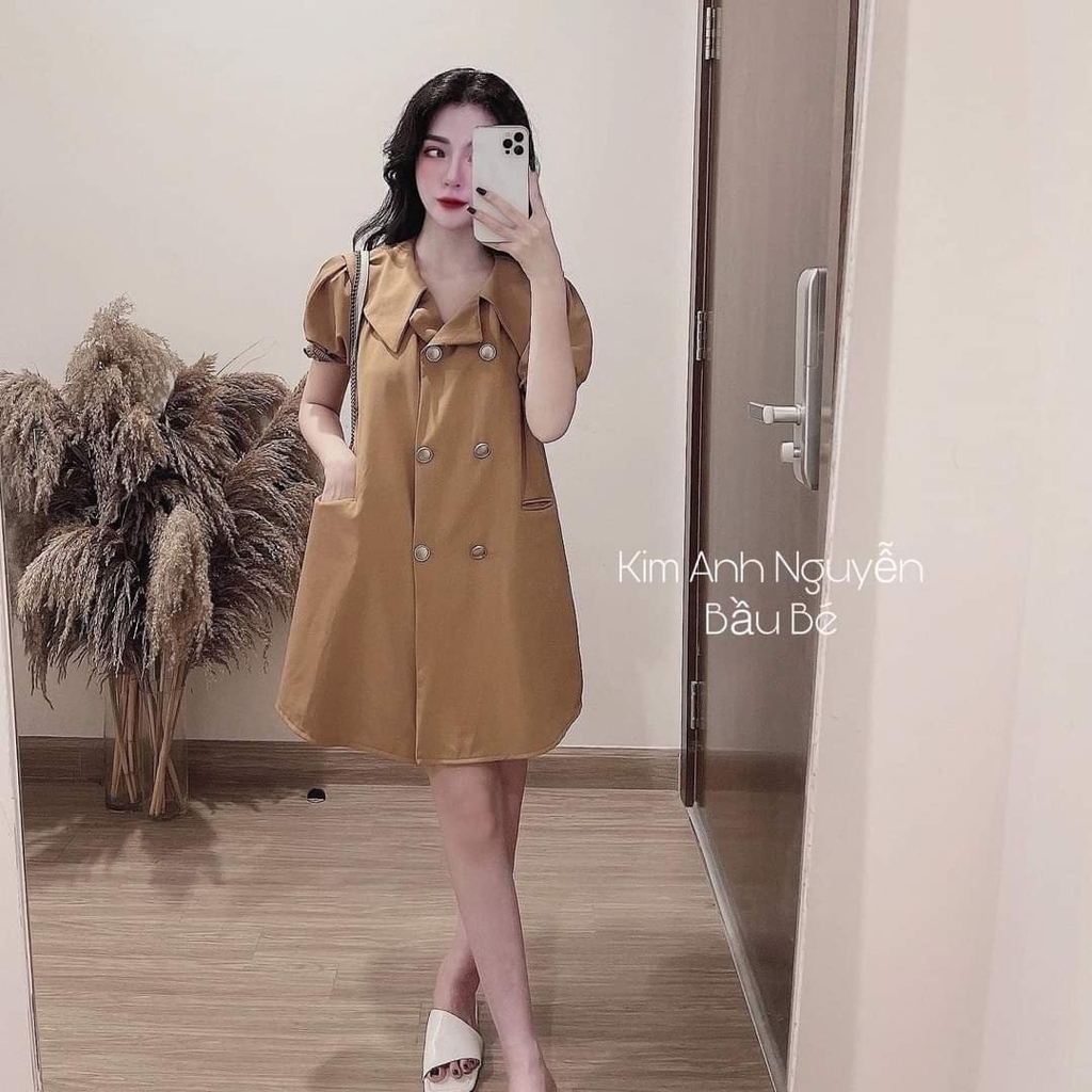 Váy suông babydoll cổ vest Khuyu xịn chuẩn đét ảnh, có túi sườnMàu nâu trẻ trung lắm ạ