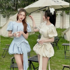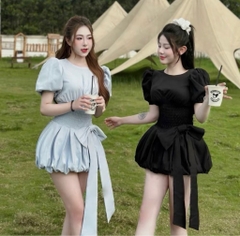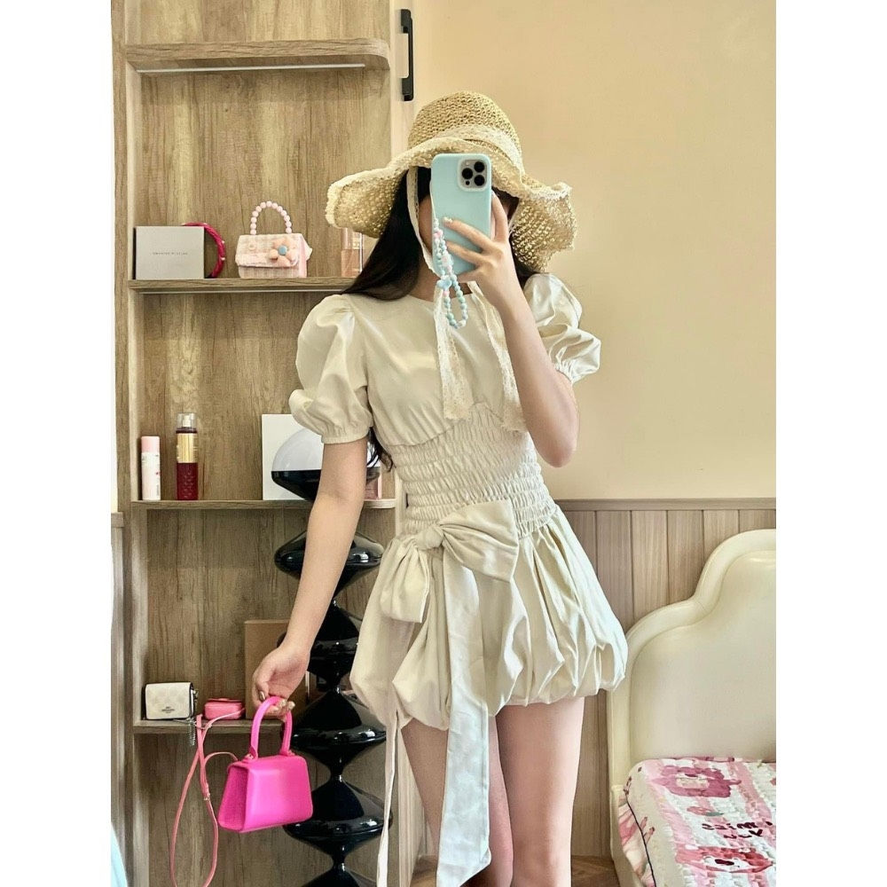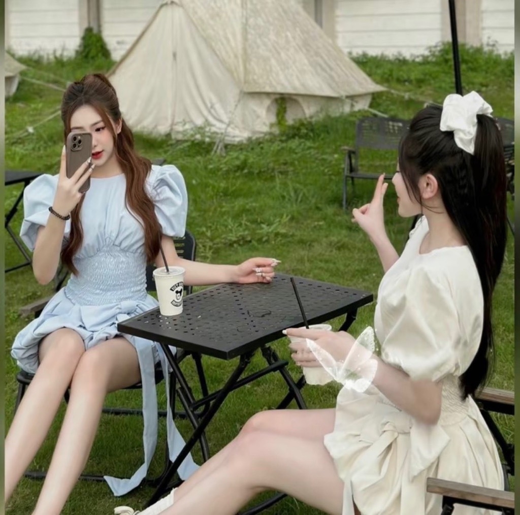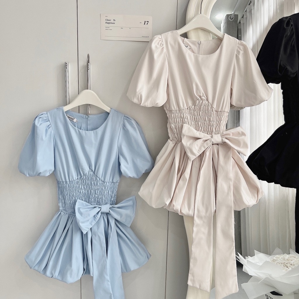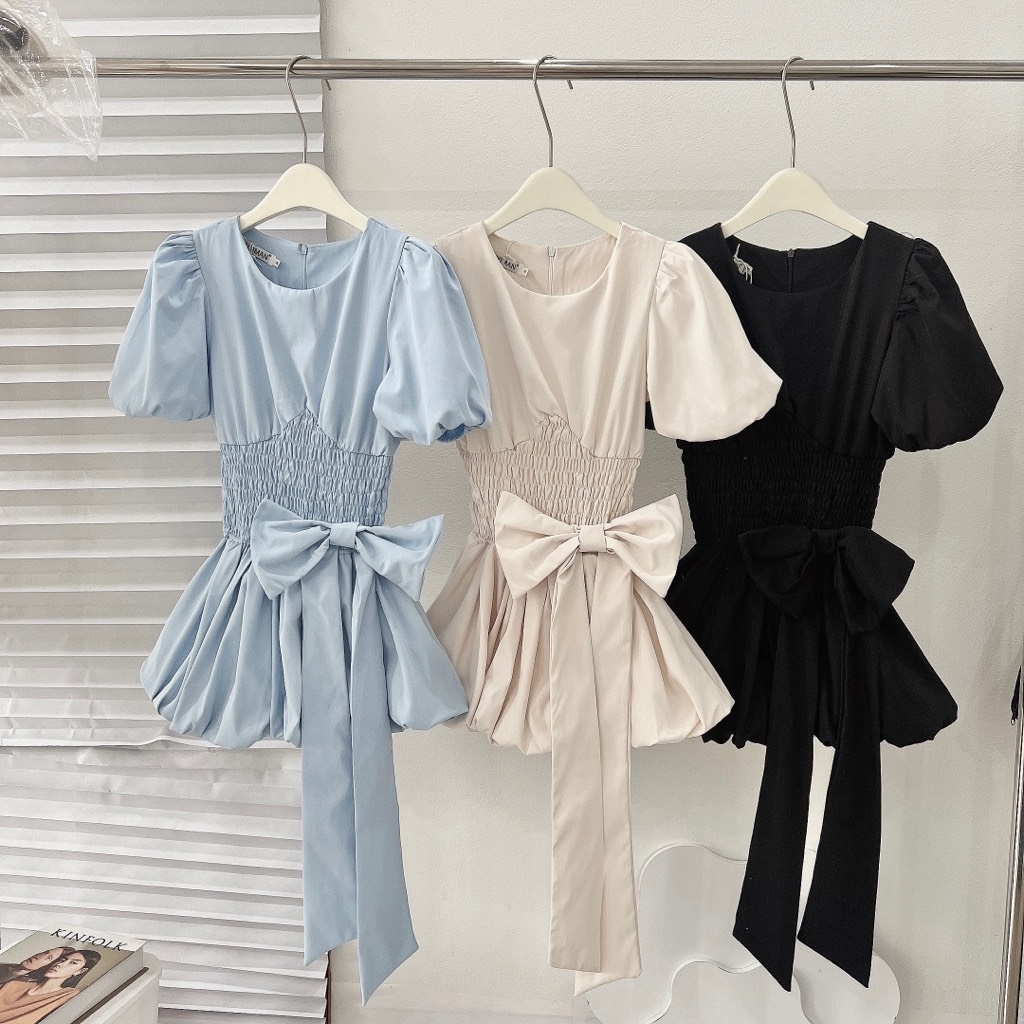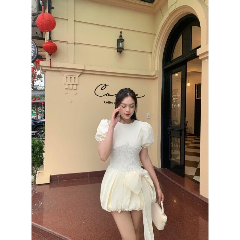 LÊN KỆ e váy chun eo tay bồng 2 lớp đẹp xỉu luôn nha. Hàng khoá lưng có lót đùi bo chun. 3 màu cơ bản xink lắm lun á.