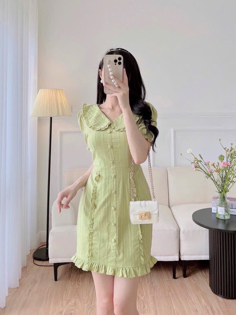 🌺Hàng hai lớp may tỉ mỉ , cố bèo V mix cúc bọc chanh xả, lên đồ đảm bảo xinh nhất hội nhé ạ