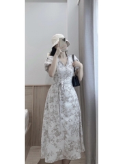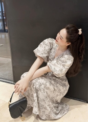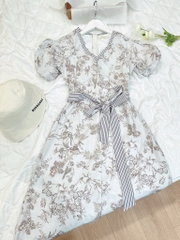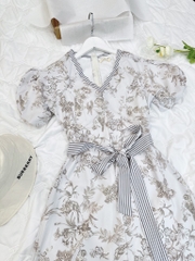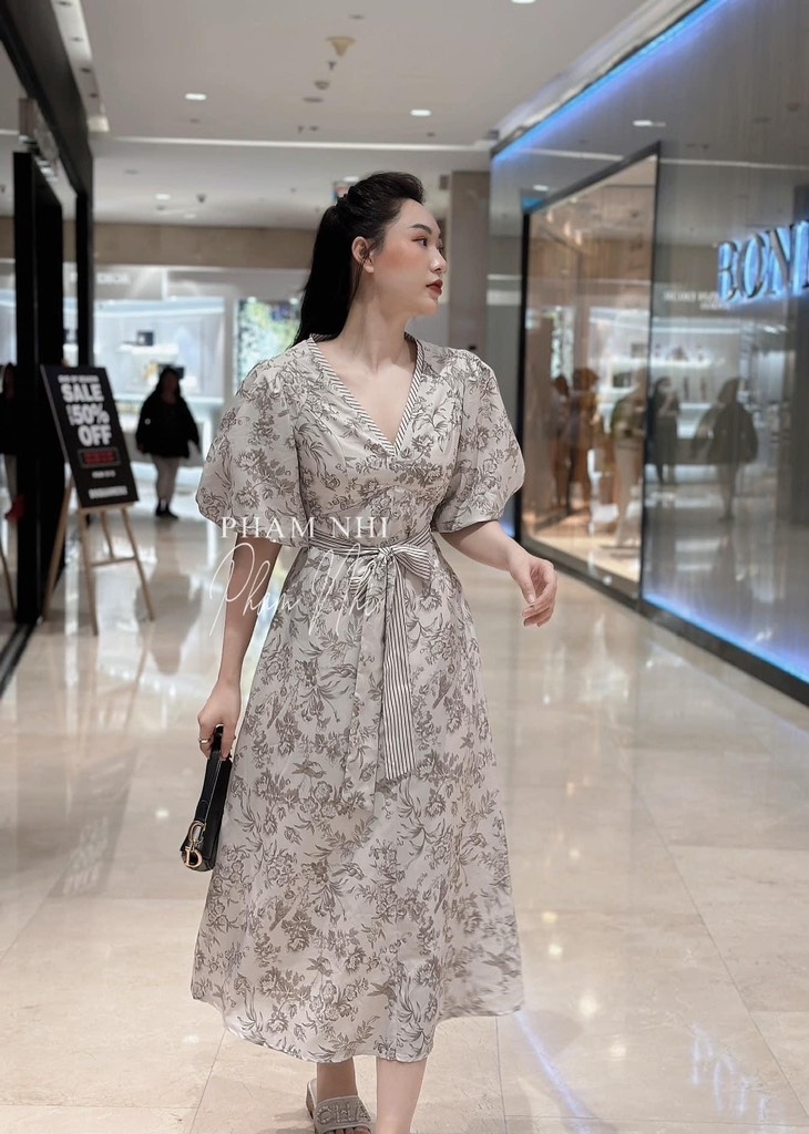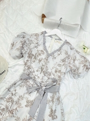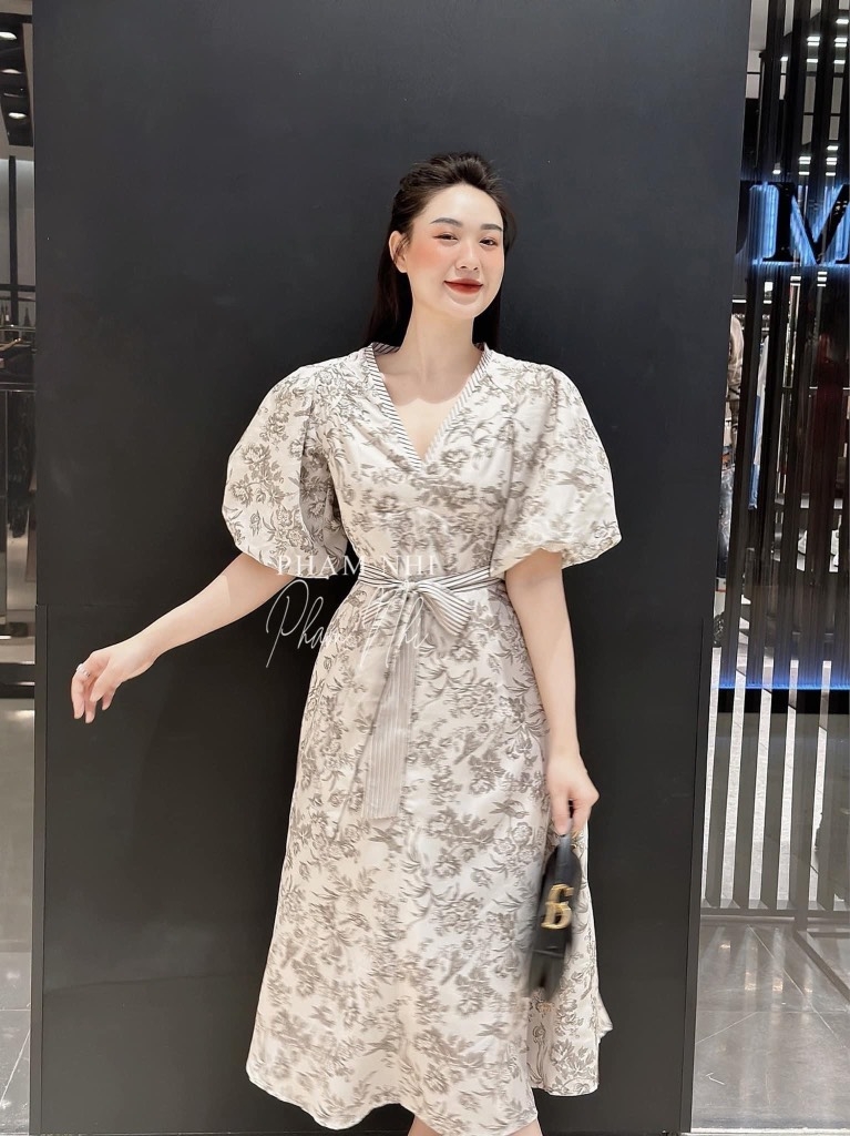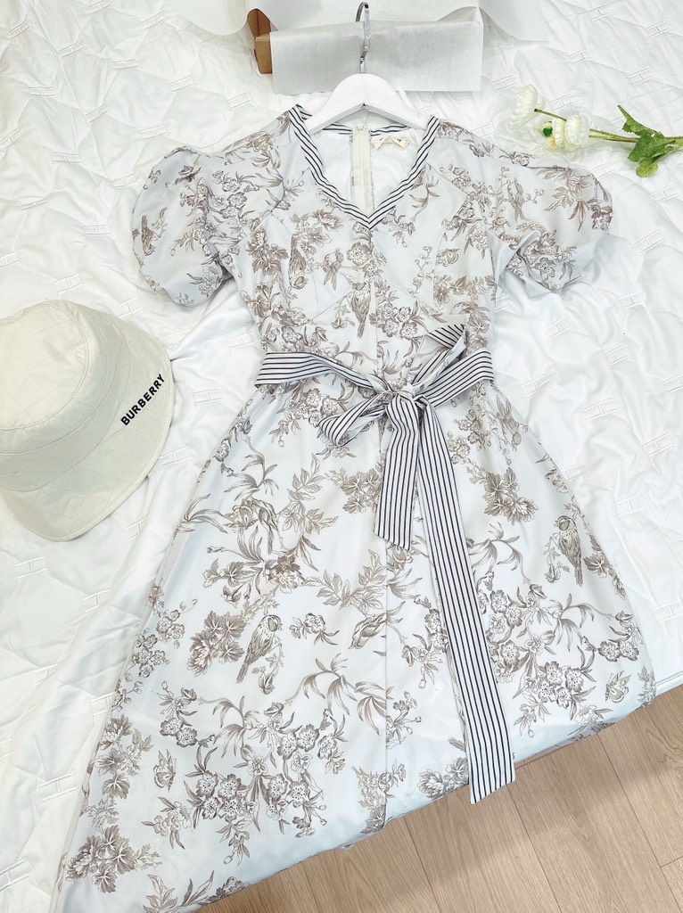 ☘️ VÁY CỔ V PHỐI KẺ KÈM ĐAI HAI LỚP ☘️