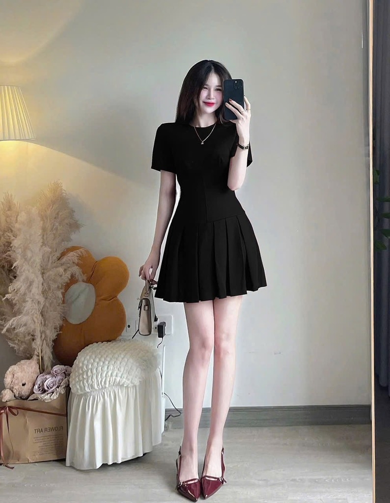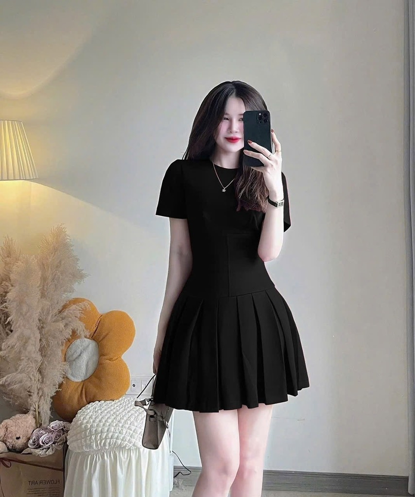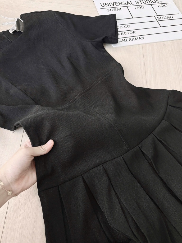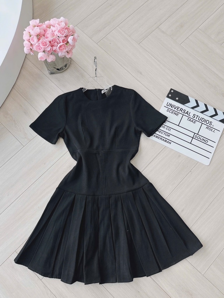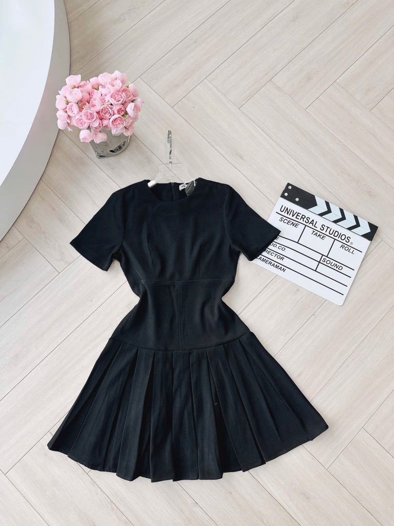 Chiếc váy đen cổ điển với thiết kế xếp ly sang trọng, tôn dáng cực chuẩn cho nàng tự tin xuống phố.